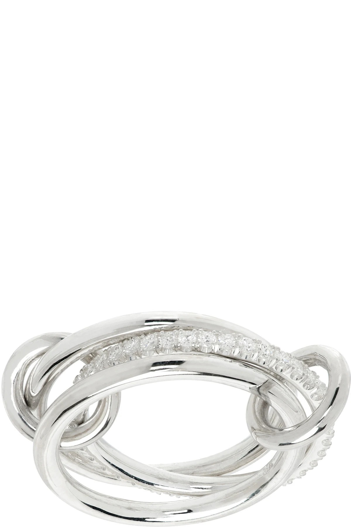 Connected and stacked band rings in sterling silver.