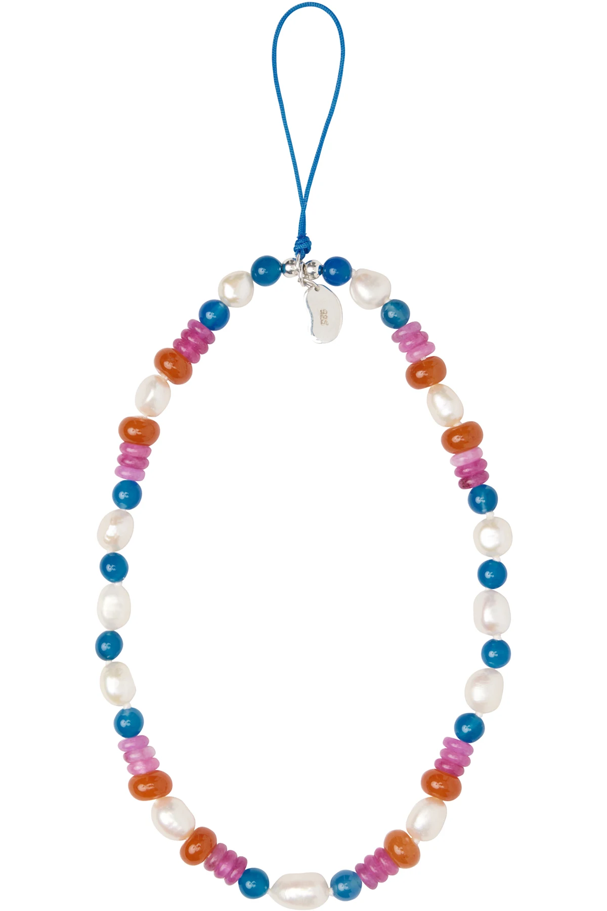Handcrafted beaded freshwater pearl phone strap in multicolor.
