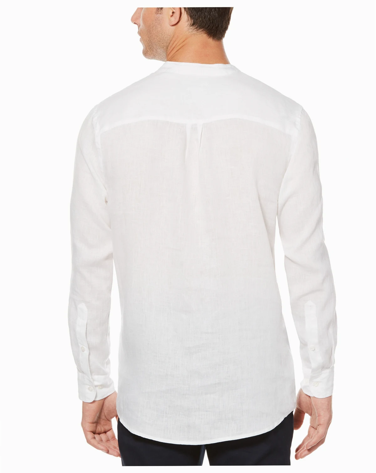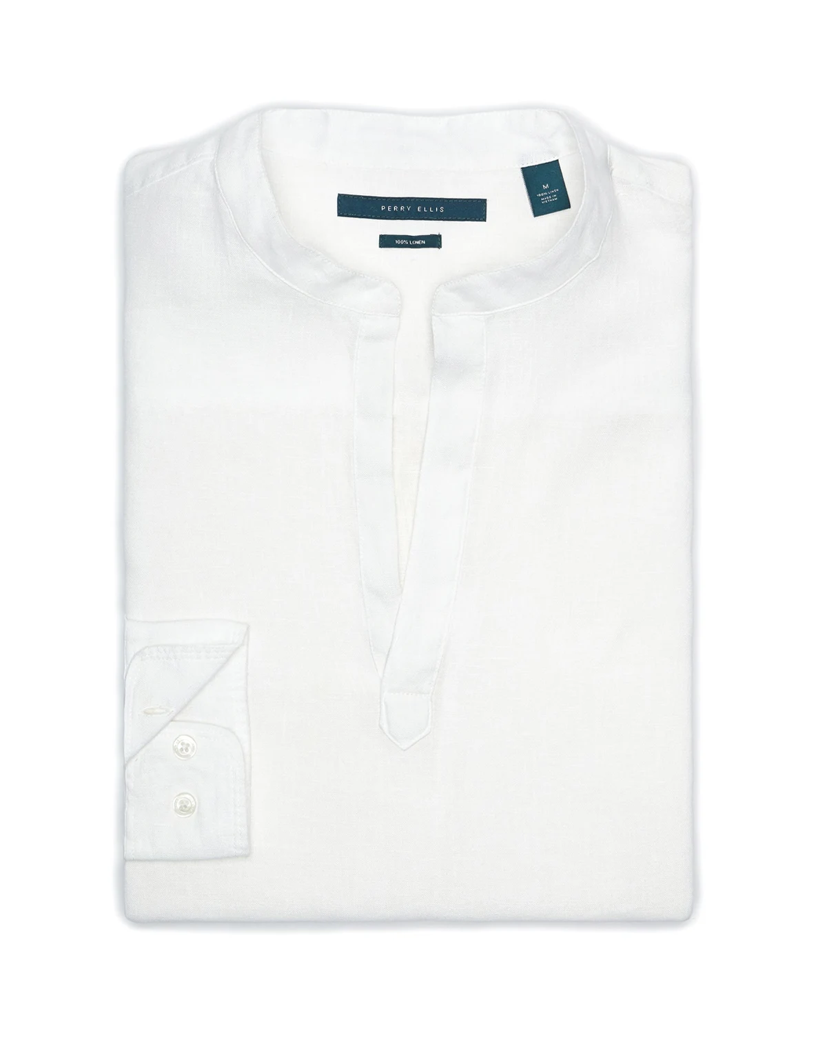 Enjoy comfort in warm weather with this lightweight linen shirt from Perry Ellis. Breathable and soft with durable plain weave fabrication, the men's long sleeve shirt delivers a fresh style that lasts.
