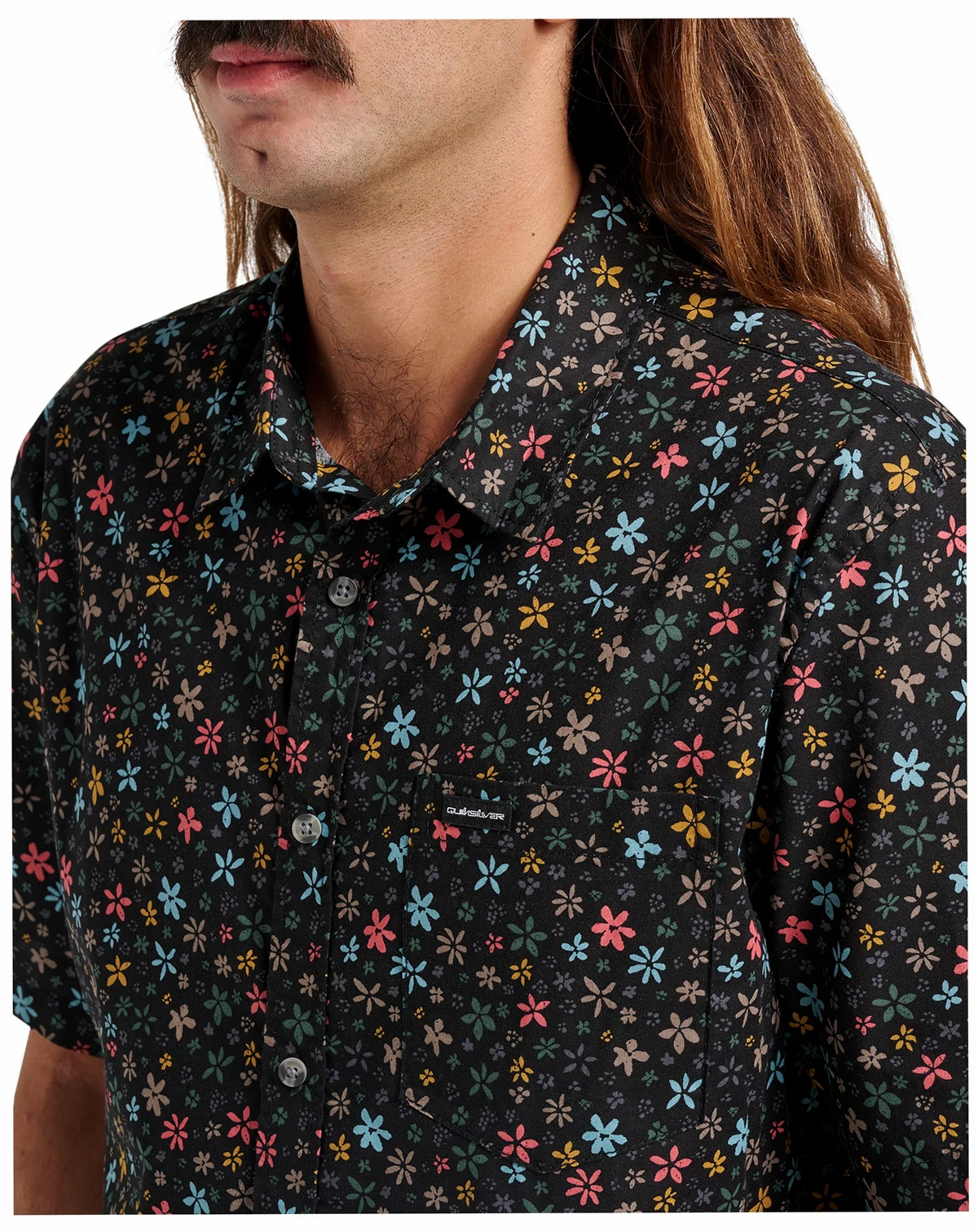 Experience comfort and style with Quiksilver's Short Sleeve Woven Shirt, featuring a single chest pocket, and scalloped hem.