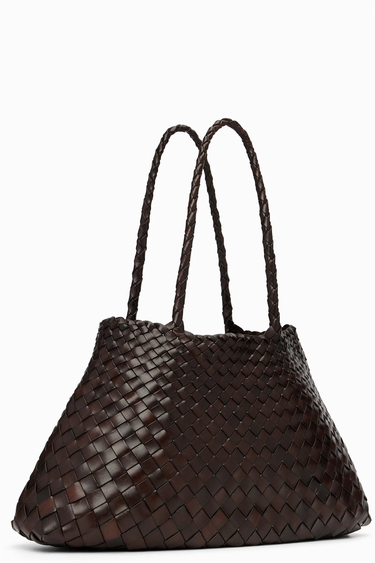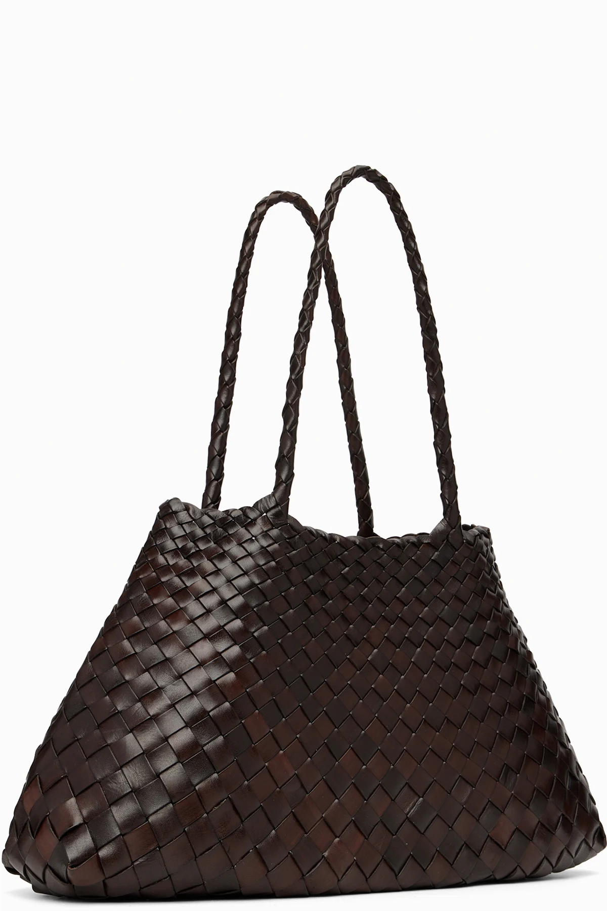 Handcrafted basket-woven buffalo calfskin tote.