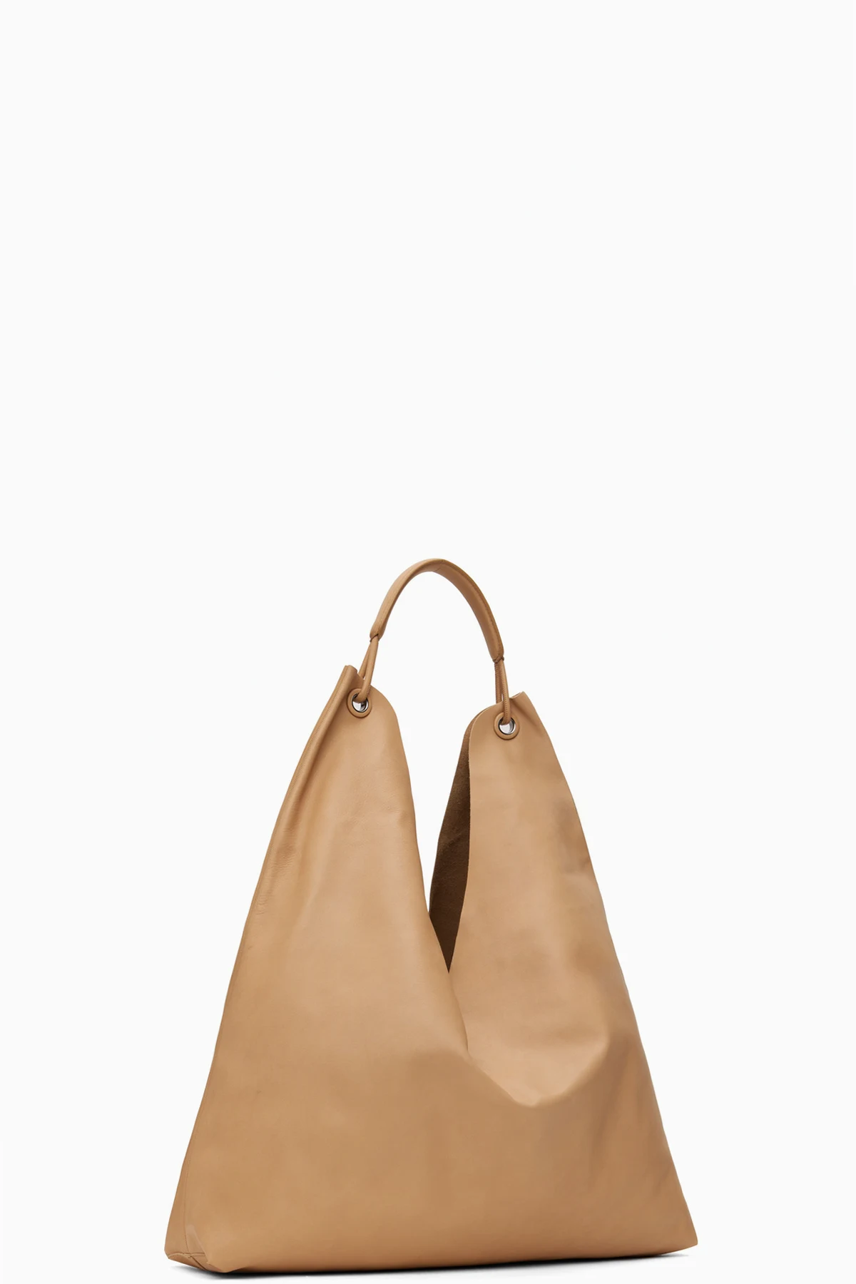 Buffed nappa lambskin tote in beige.