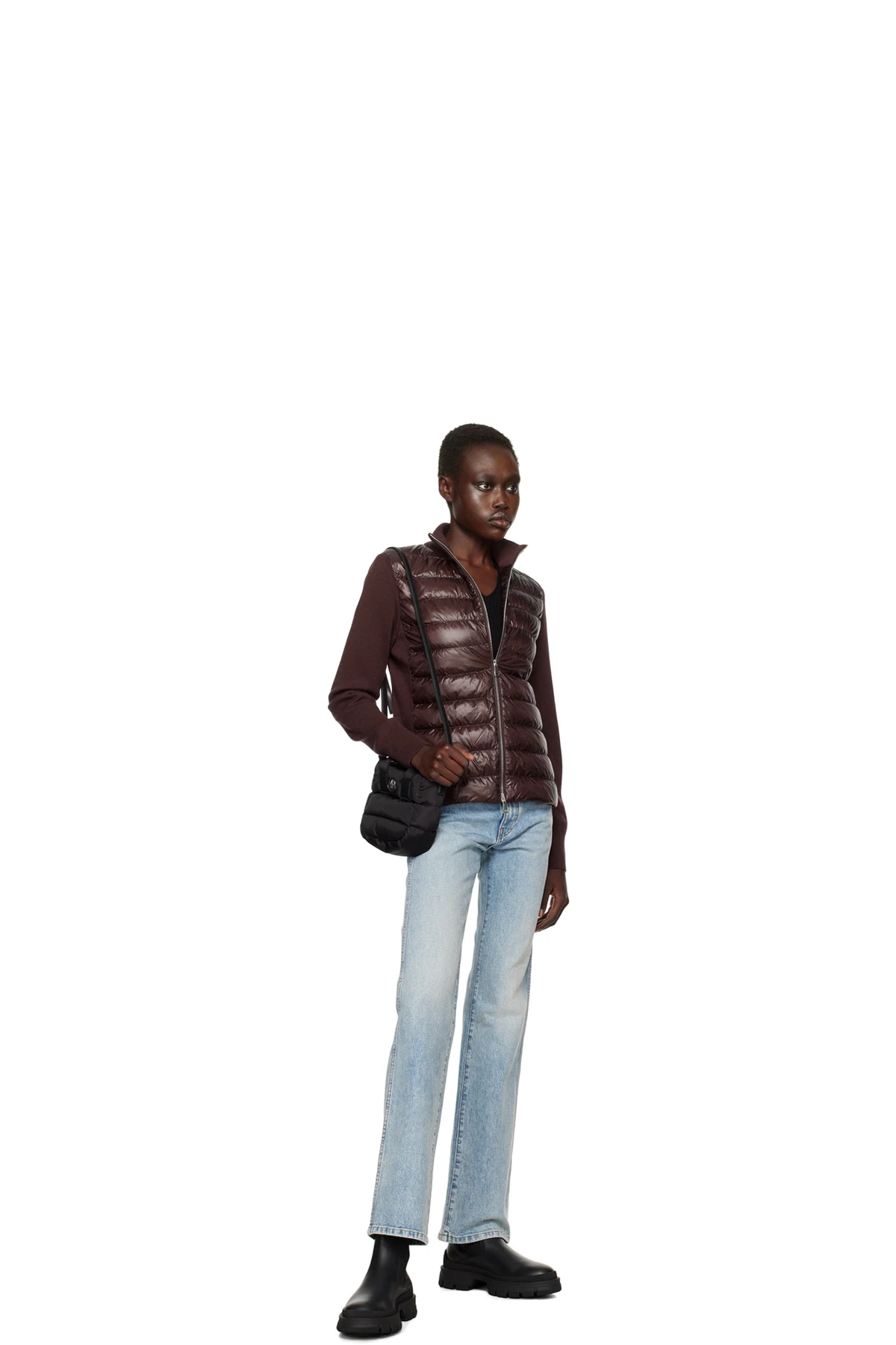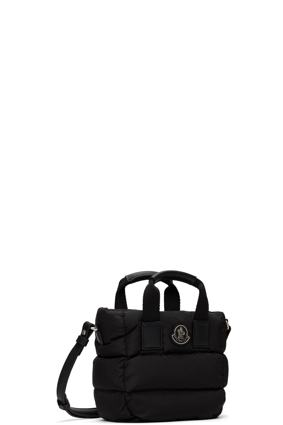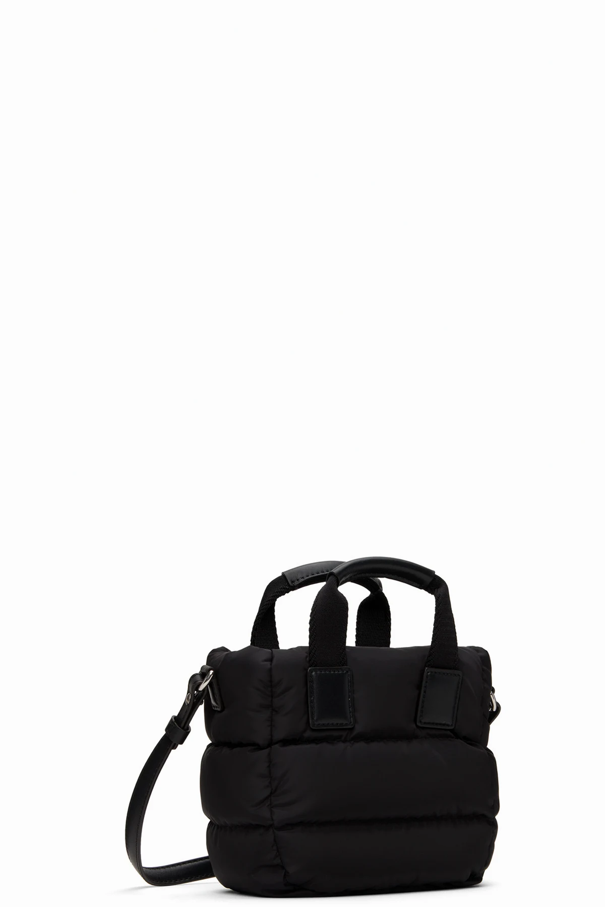 Down-filled quilted nylon taffeta tote in black.