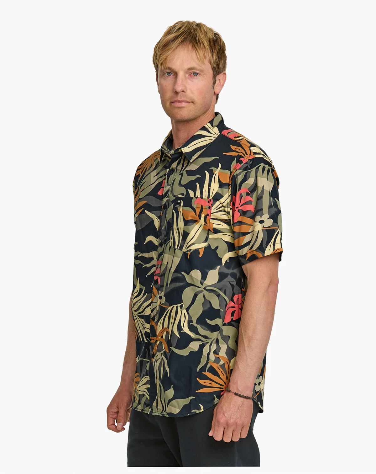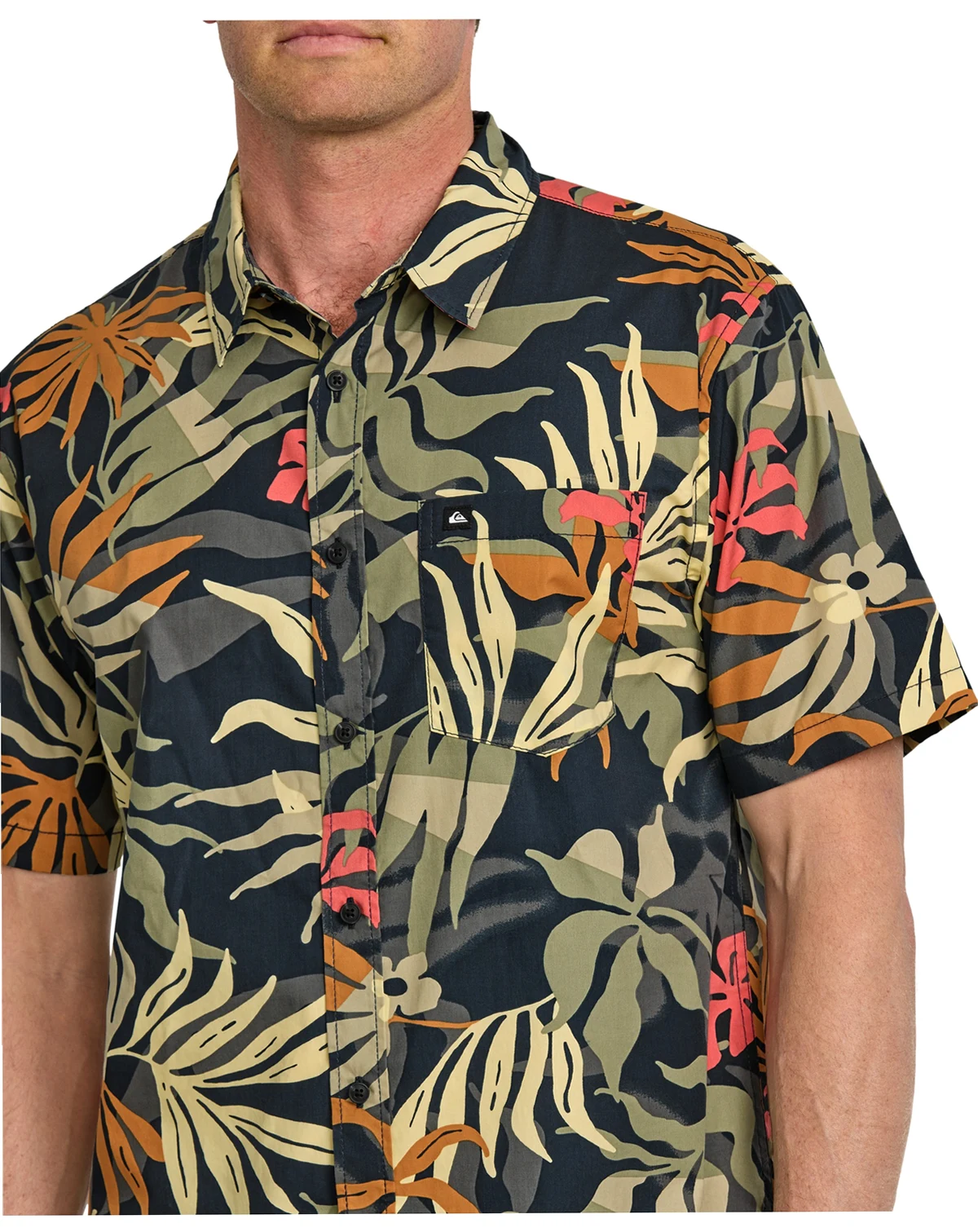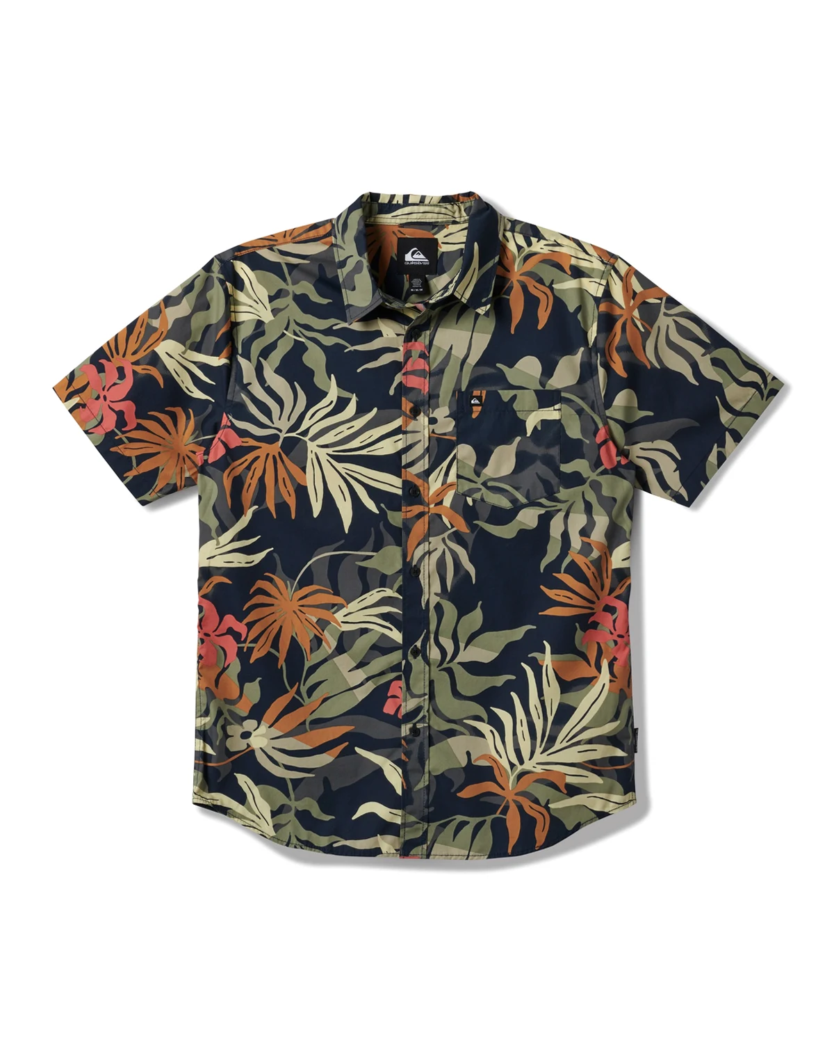 Experience comfort and style with Quiksilver's Short-Sleeve Woven Shirt, featuring a regular fit, classic collar neck, short sleeves, button closure, single chest pocket, and scalloped hem.