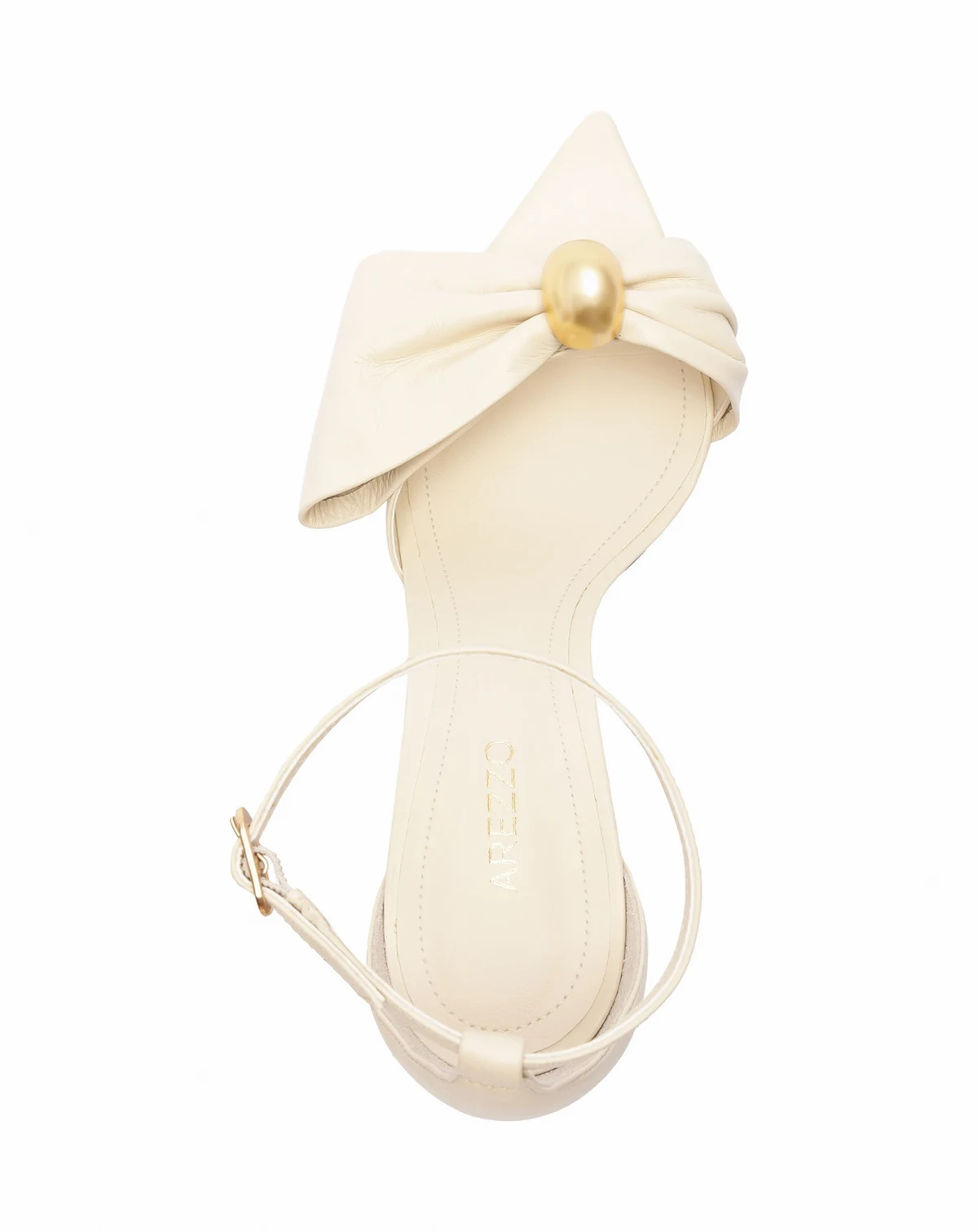 The Rayna High Stiletto Sandal shines in every season. This dream sandal features a bow with a metallic accent at the front, adding a touch of charm to your look. With a sleek stiletto heel, it's perfect for chic parties and the office alike. Embrace the versatility and grab yours today!