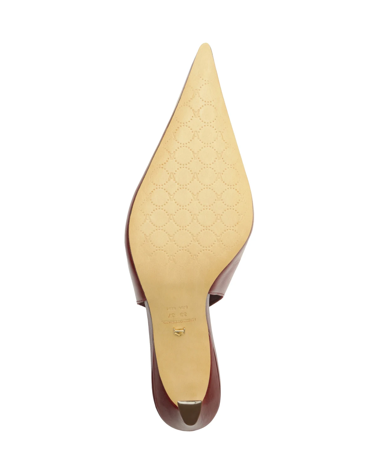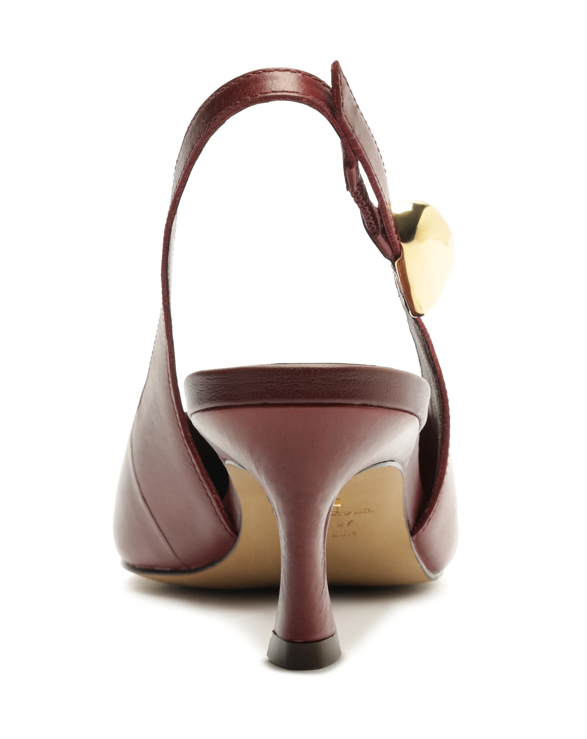 The Farrah Low Stiletto Pump exudes modern glamour. With versatile colors, a unique V-cut upper, and a golden shaped embellishment, this shoe takes you from business meetings to sophisticated evening events in style.