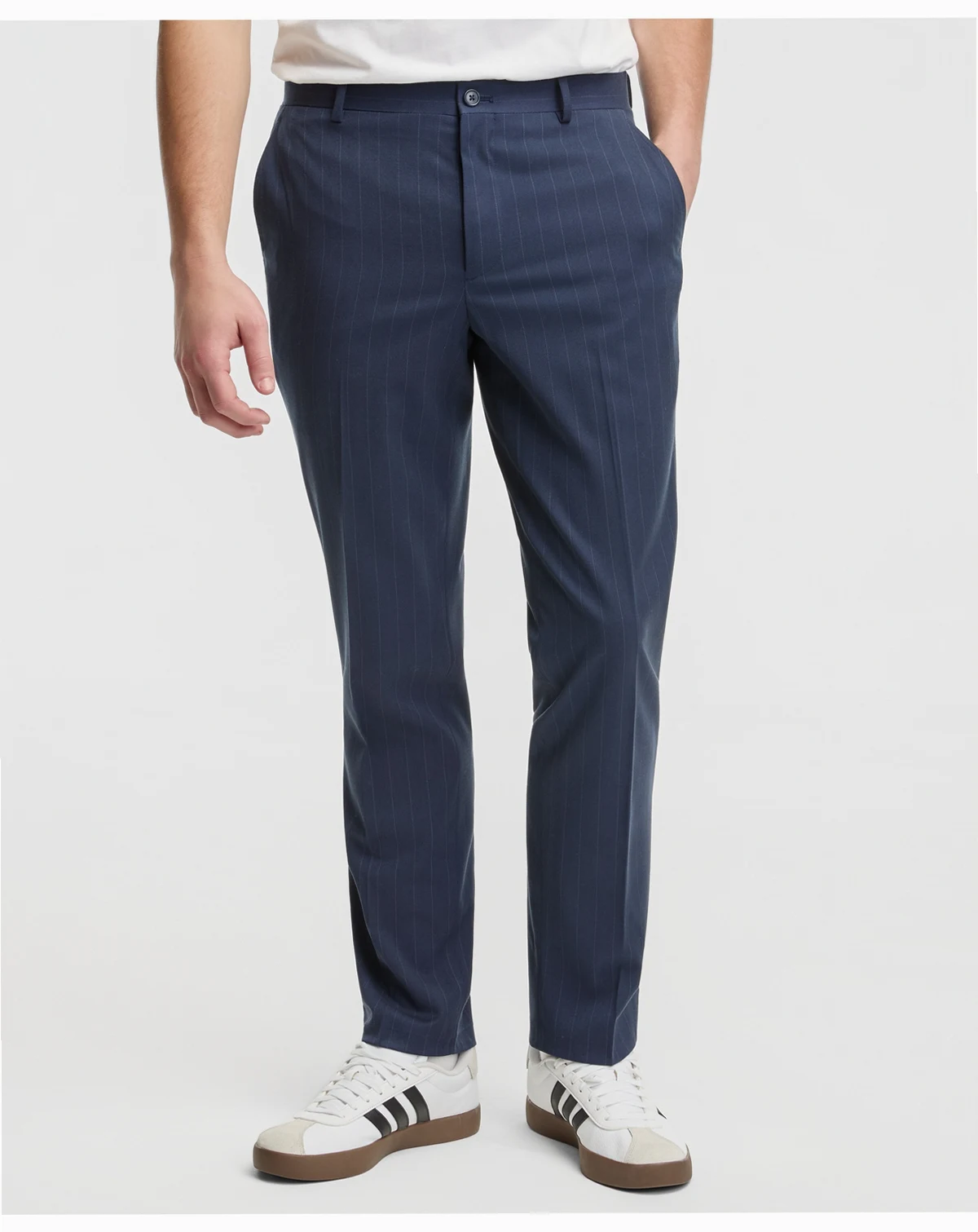 Suit up a classic meets modern look with the updated pinstripes and sleek slim-fit of these pants from Mode of One. ABOUT THE BRAND: Mode of One is designed for the individual who sees style as a powerful tool for self-expression.