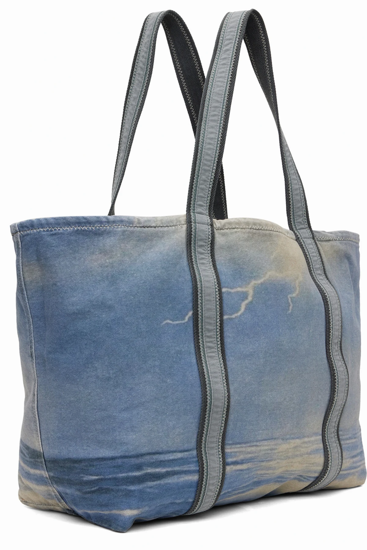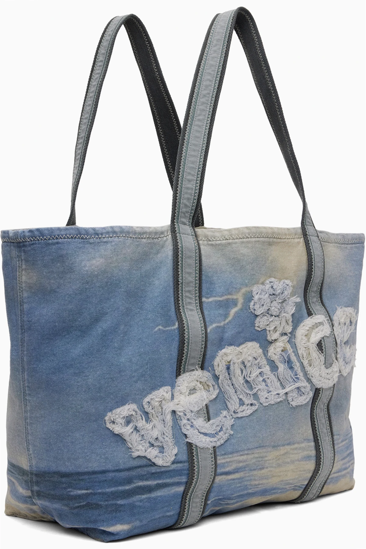 Cotton canvas tote in tones of blue.