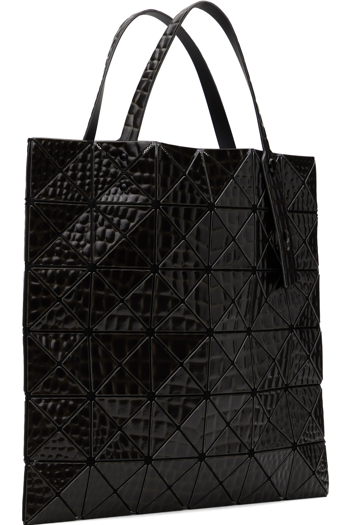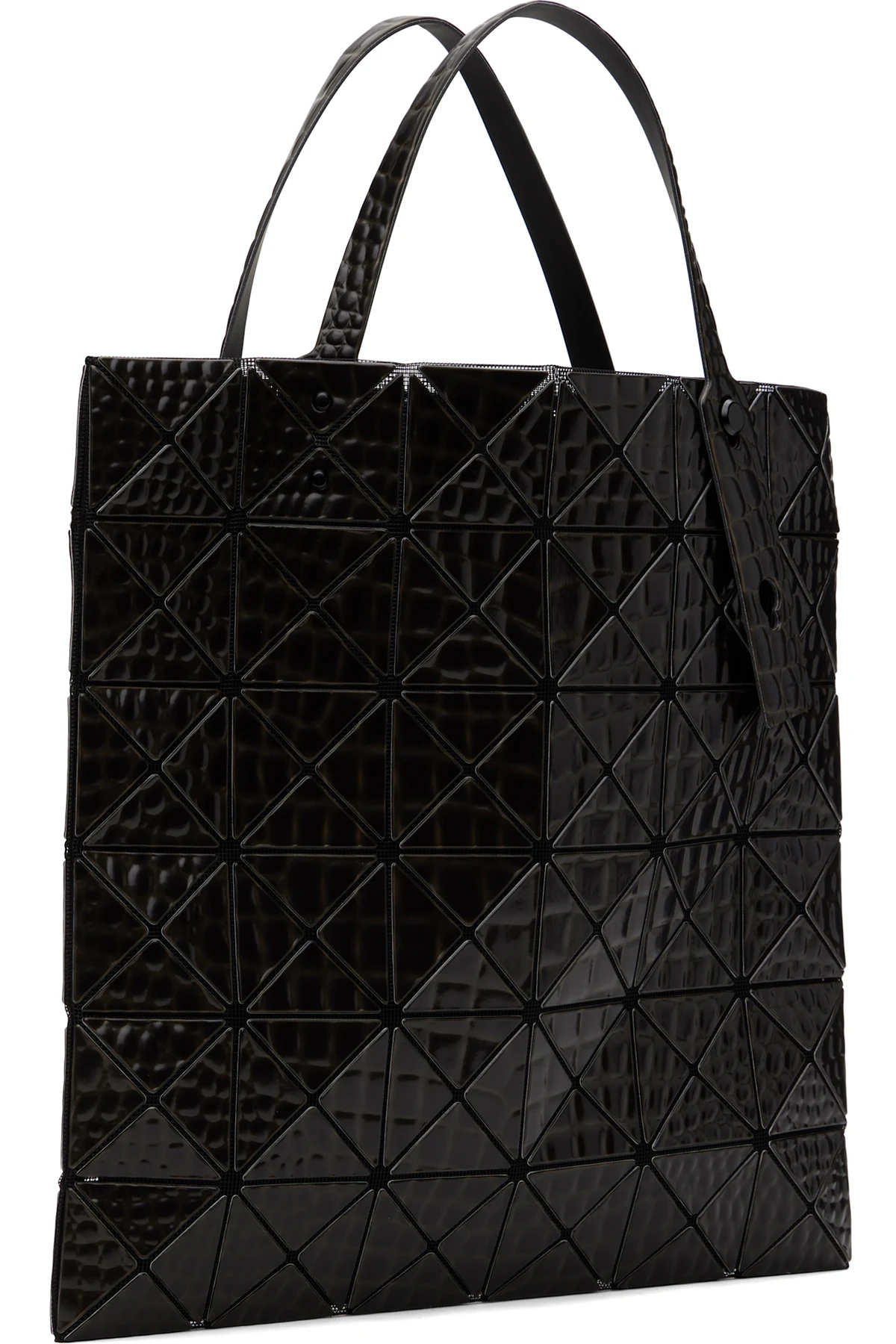 · Croc-embossed signature triangular vinyl appliqués throughout