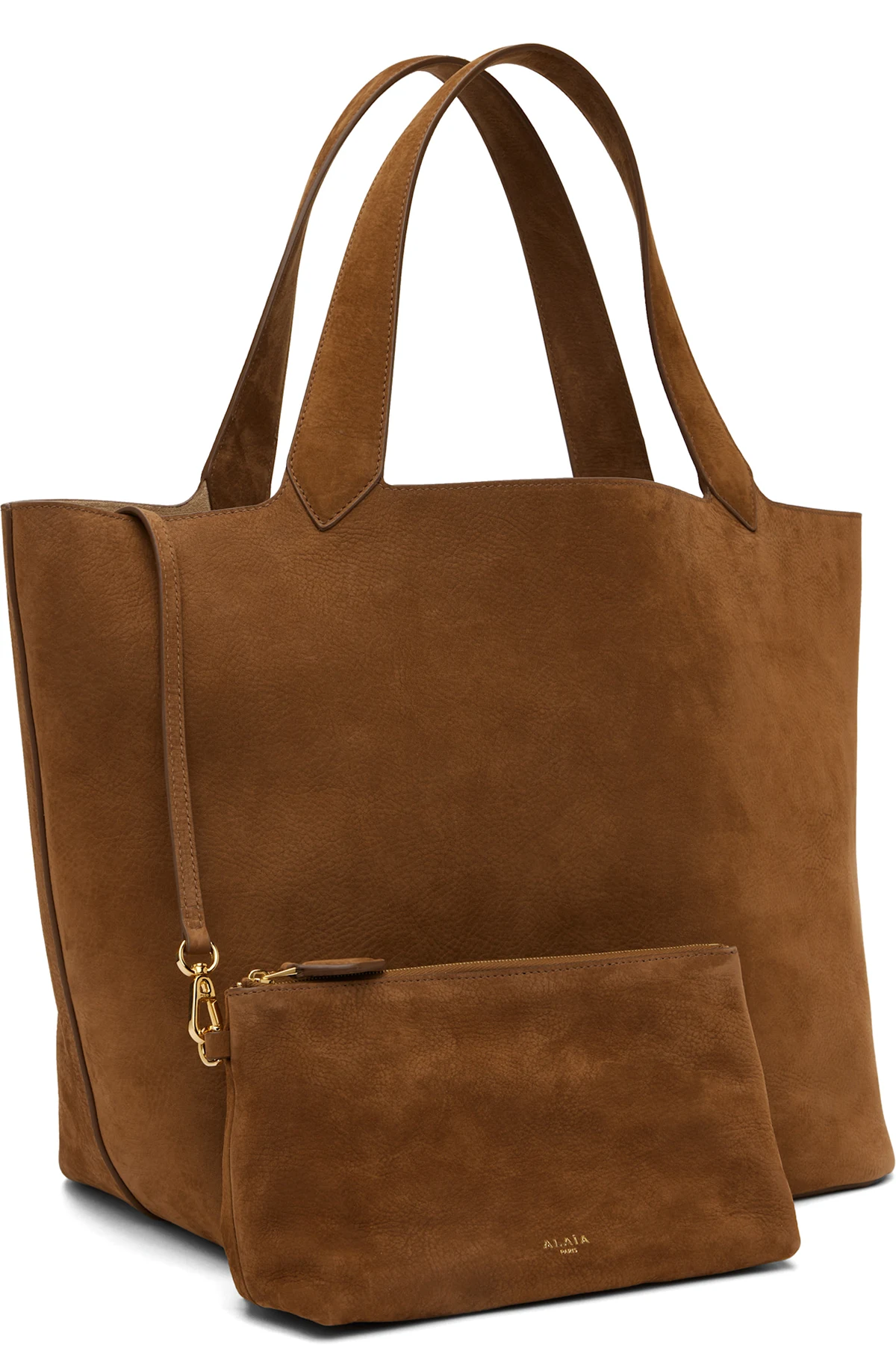 Calfskin nubuck tote in tan.
