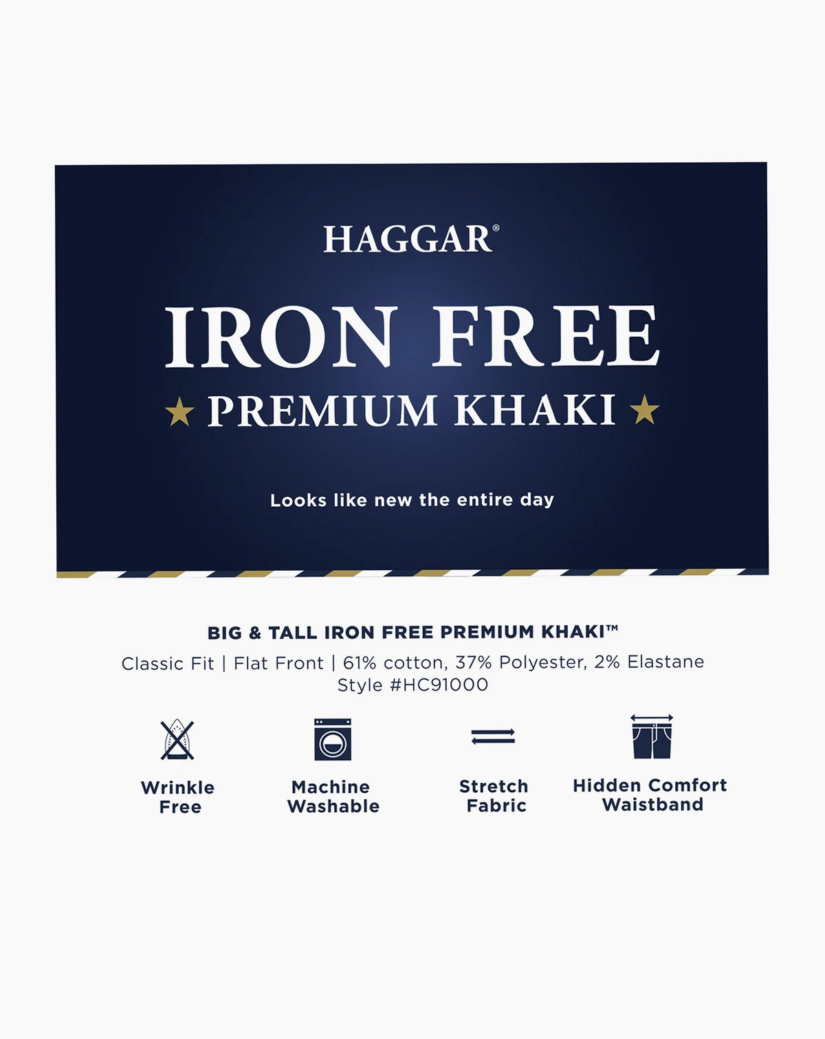 Keep your look crisp and comfortable for long days at the office with the unrestrictive 2-way stretch fabric and polished wrinkle-free finish of these premium dress pants from Haggar.