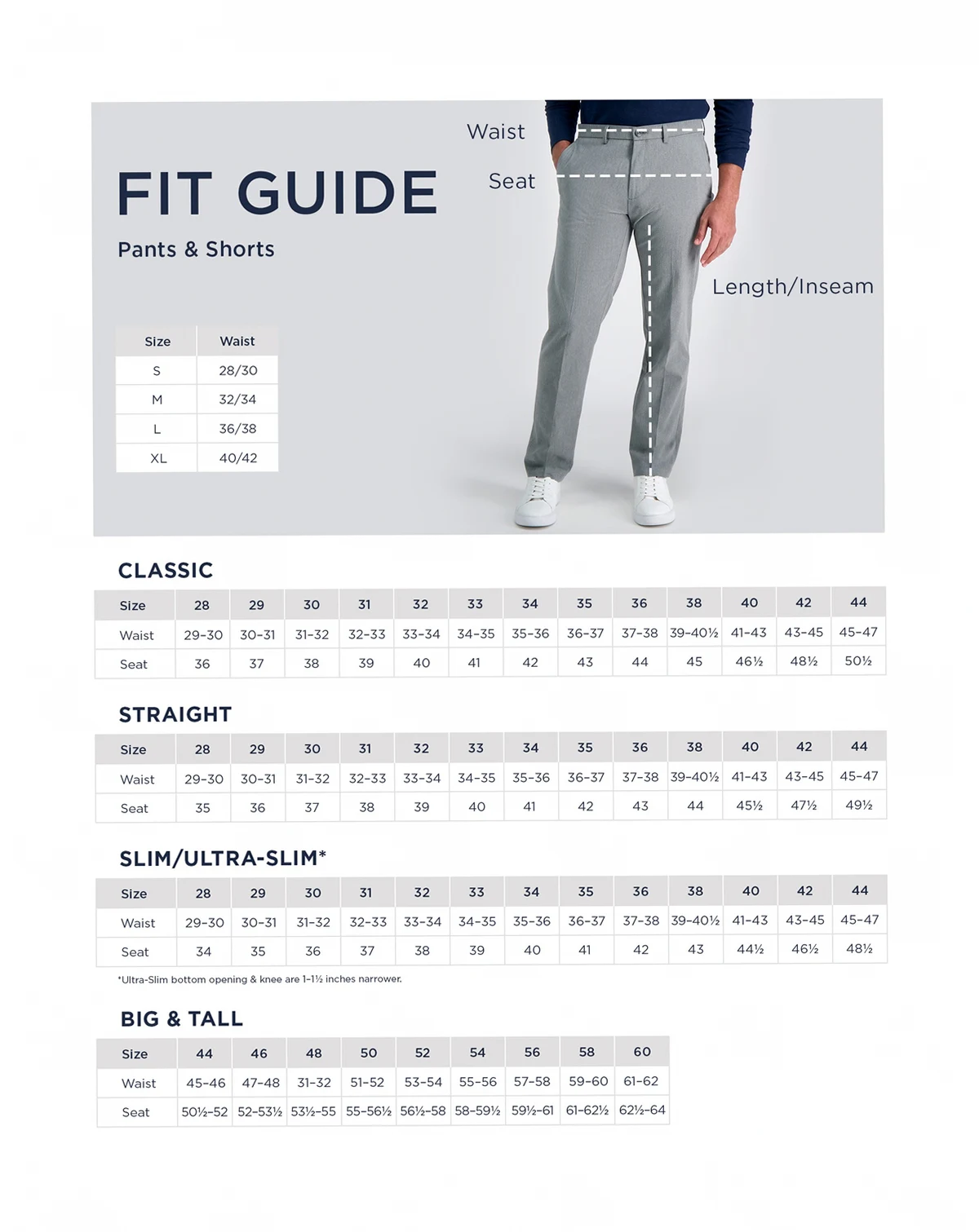 Size_and_fit Classic fit pants sit at the waist; relaxed fit through hips and thighs with a straight leg opening; Hidden comfort waistband expands 3"