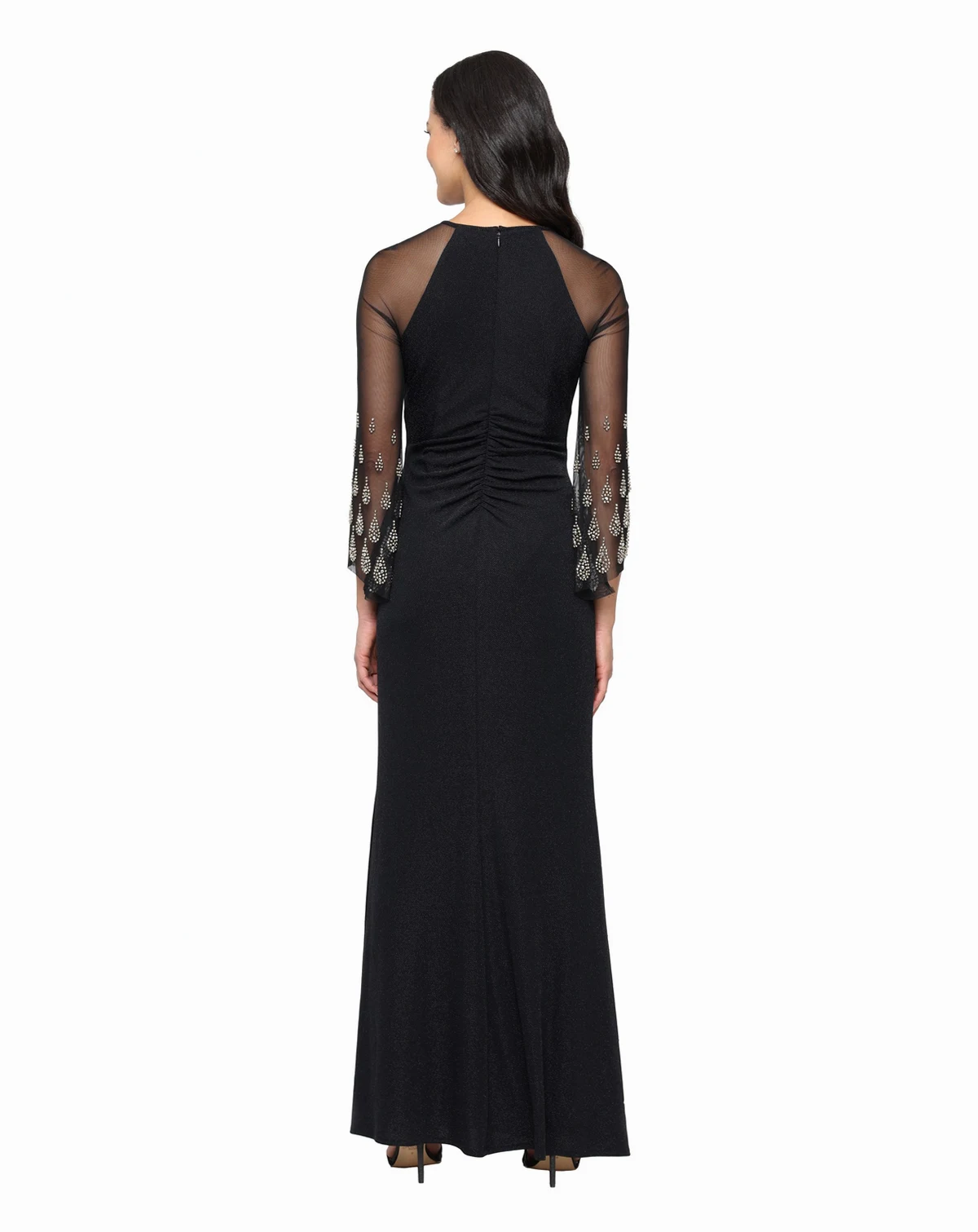 Step into effortless sophistication in Alex Evenings long metallic knit black gold A-line dress. The sleek design and flowing shape make it versatile for any special occasion, ensuring you look polished from ceremony to celebration.