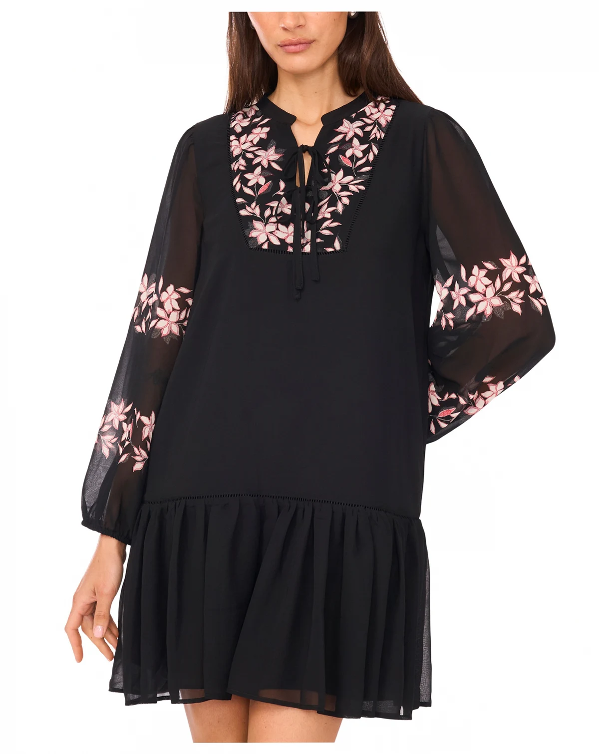 Flattering and effortlessly polished, this shift dress from MSK features a split neckline, long sleeves, and a pull-on silhouette that drapes gracefully from the waist for a chic, knee-length fit.