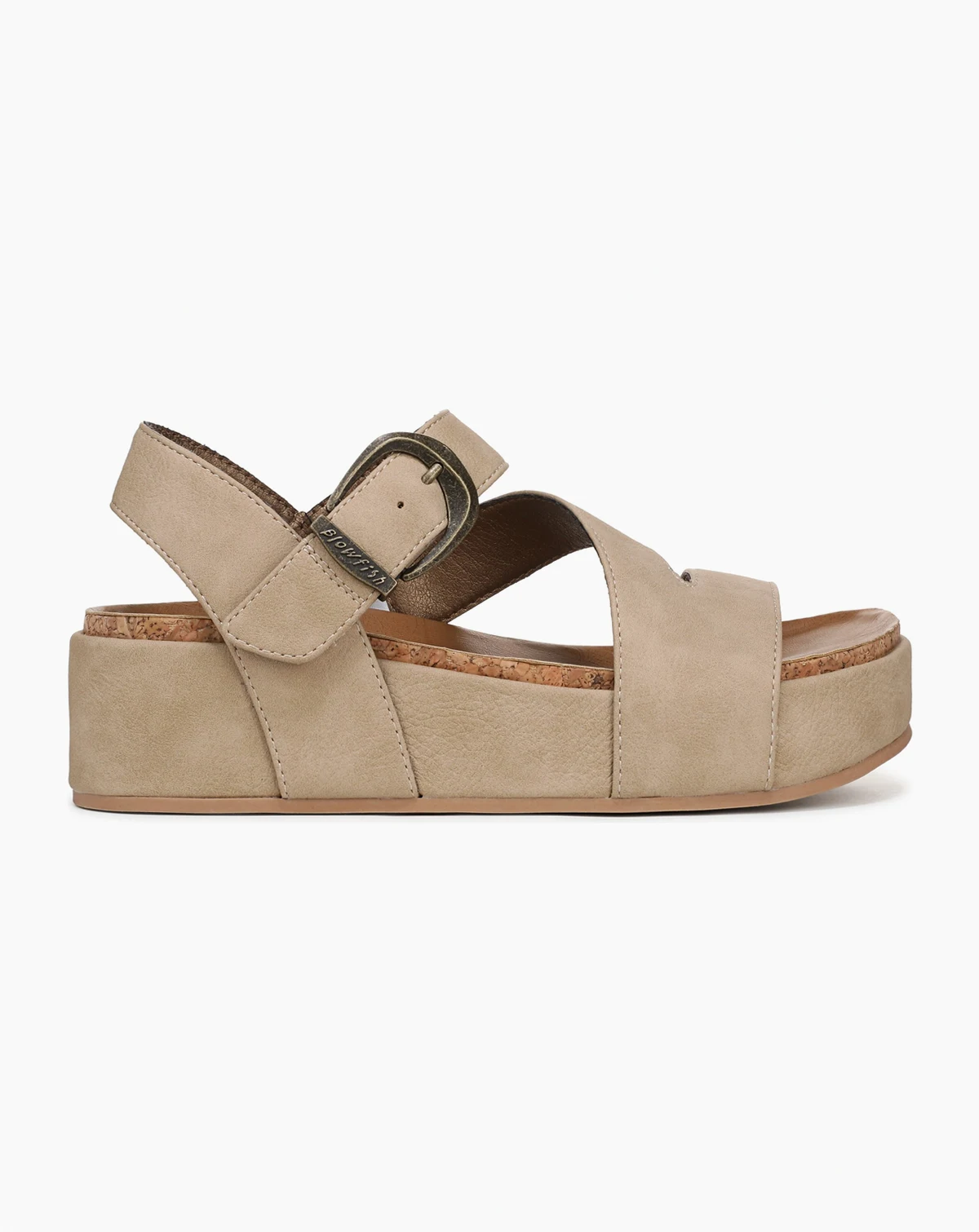 Elevate your outfit with the Isabel sandal from Blowfish Malibu. Features include a hook-and-loop closure, a decorative buckle and a platform style. Faux-leather or faux-nubuck upper. Hook-and-loop closure. Decorative buckle. Platform. Open toe.