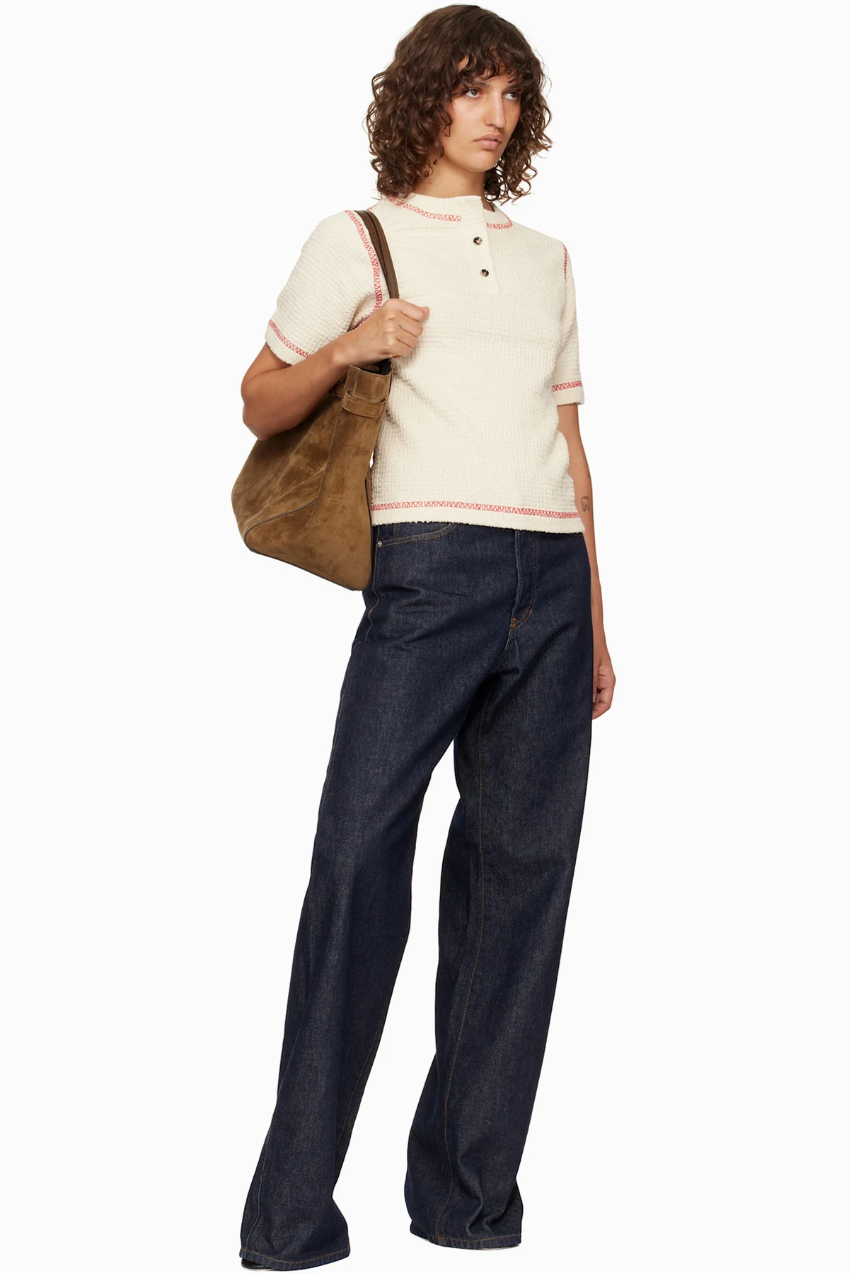 Calfskin suede carryall tote.
