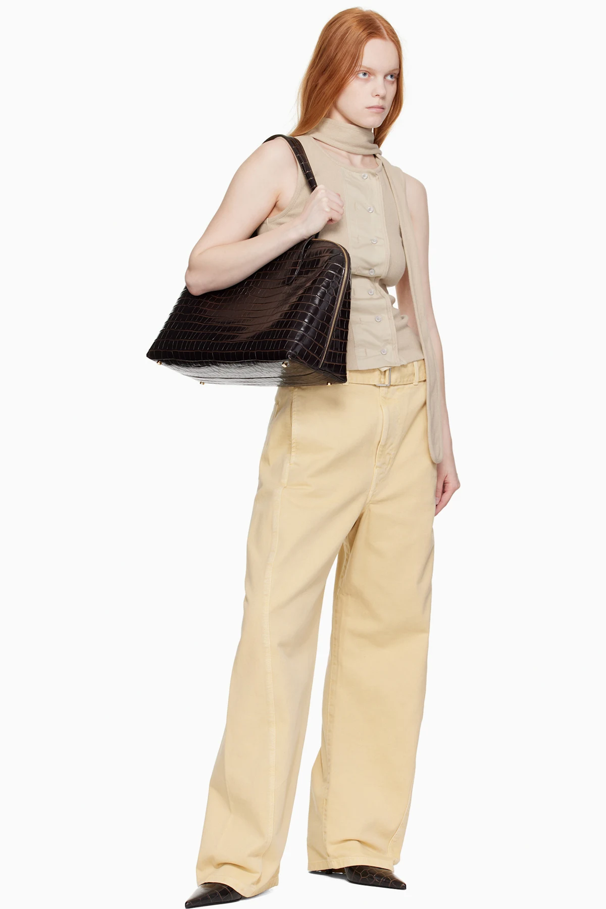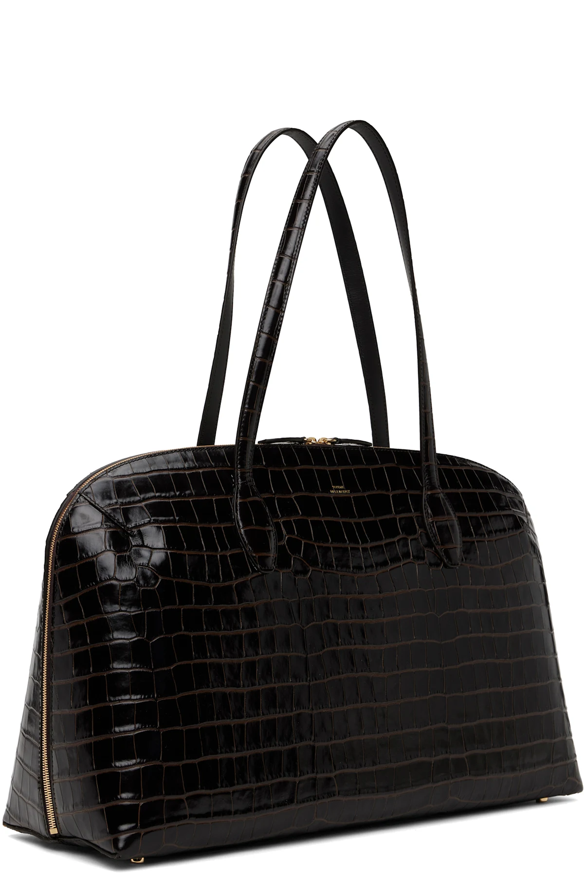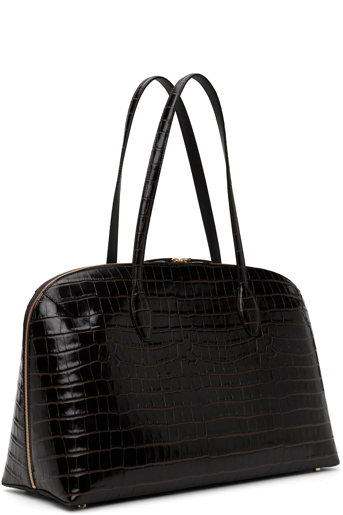 LWG-certified croc-embossed leather tote in brown.