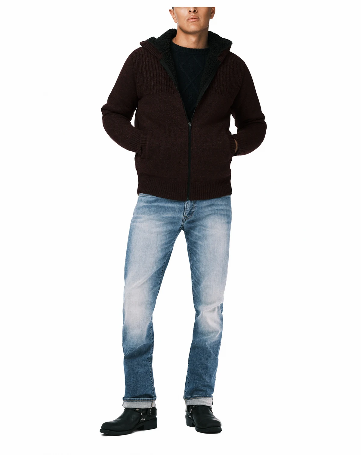Stay comfortable in cooler weather with this Buffalo David Bitton hooded jacket featuring full-zip design. Ribbed details at cuffs and edges add bold styling with modern appeal. The lined construction provides extra warmth during colder temperature conditions. This piece coordinates easily with various casual outfits.