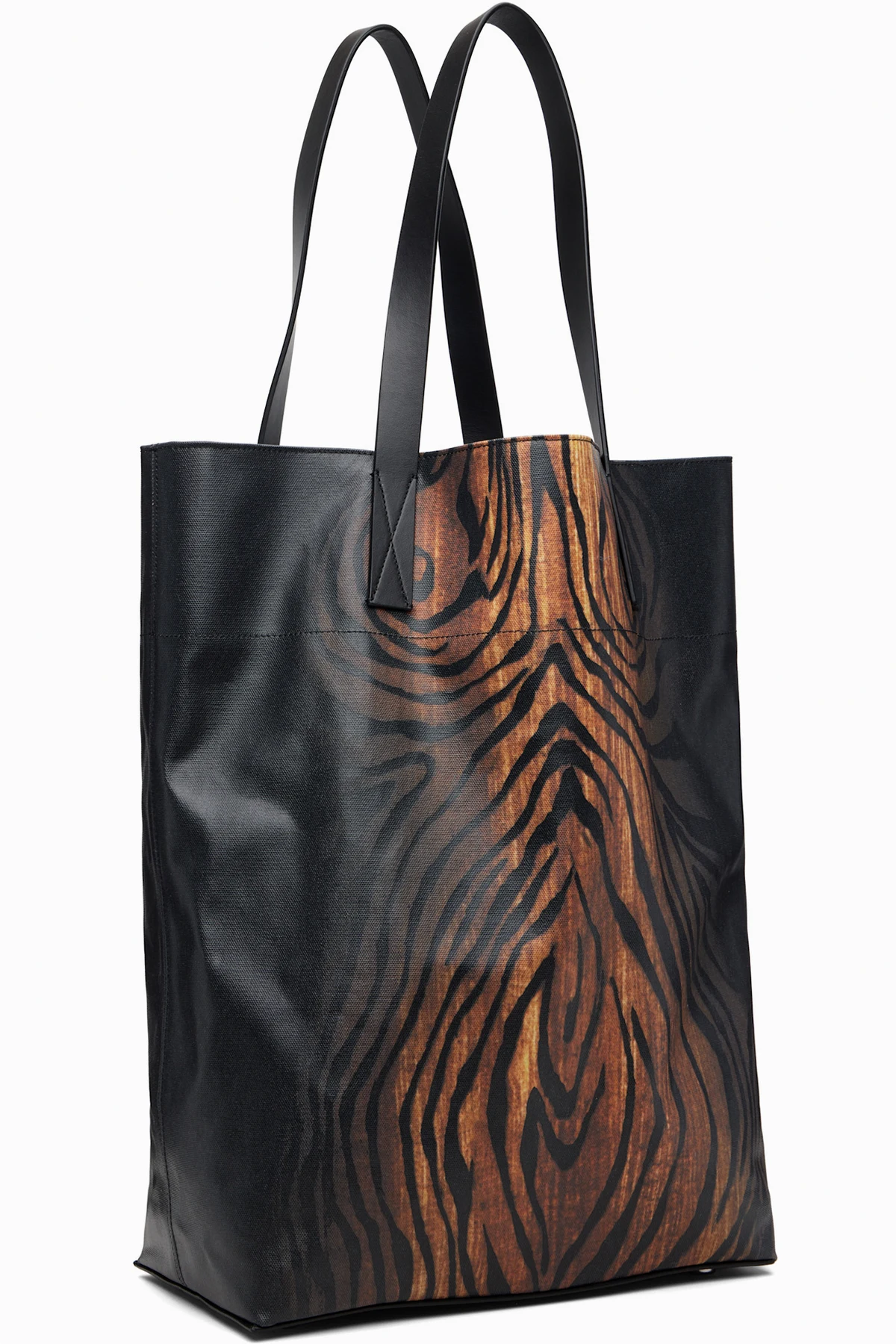 Black & Brown Coated Canvas Printed Wood Tote