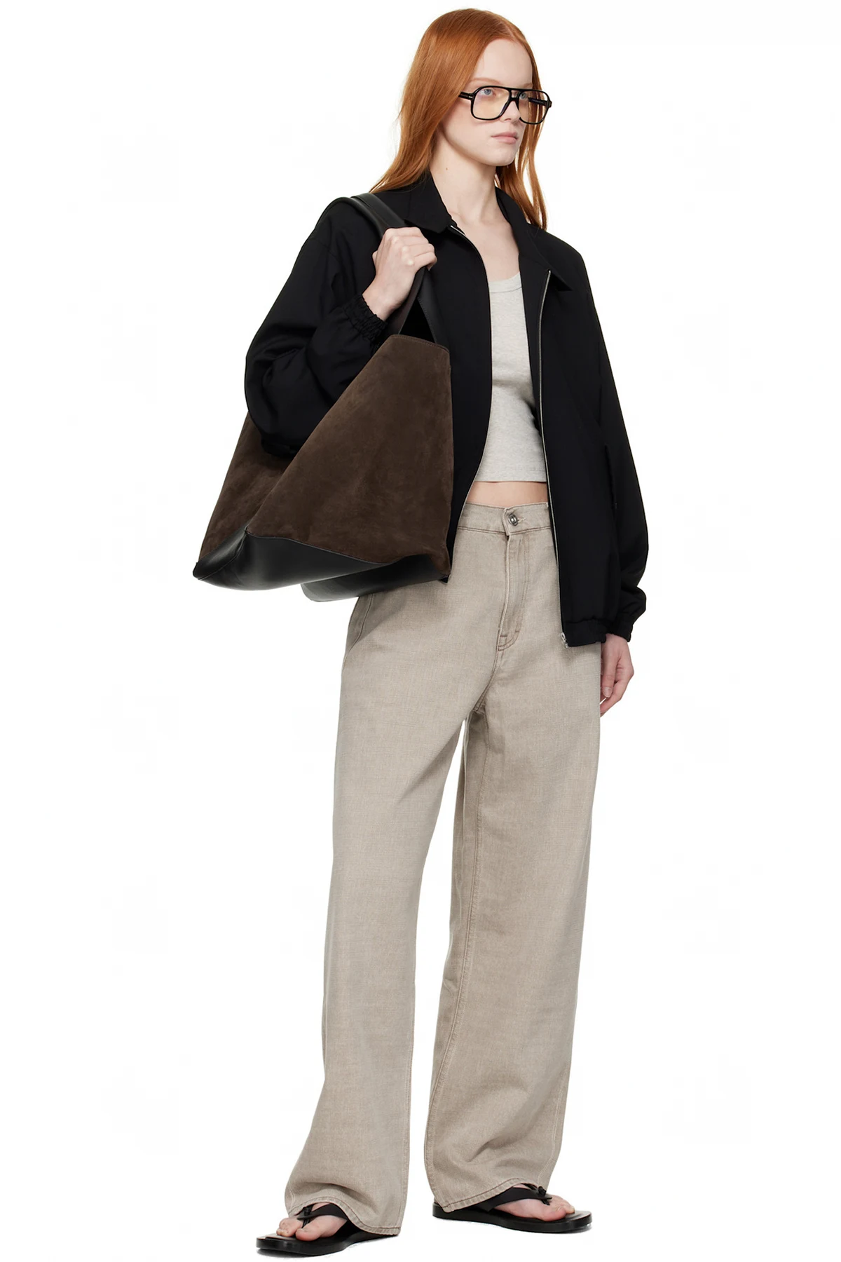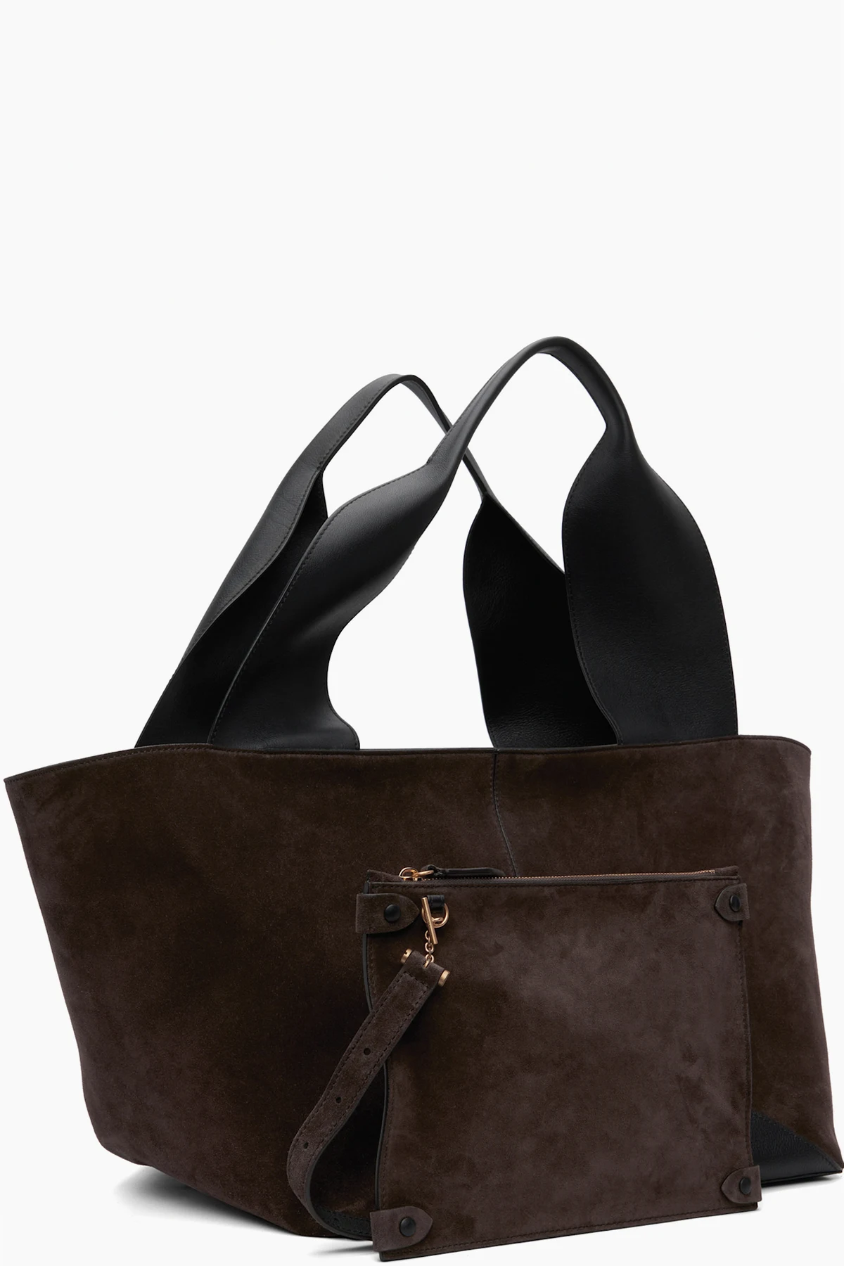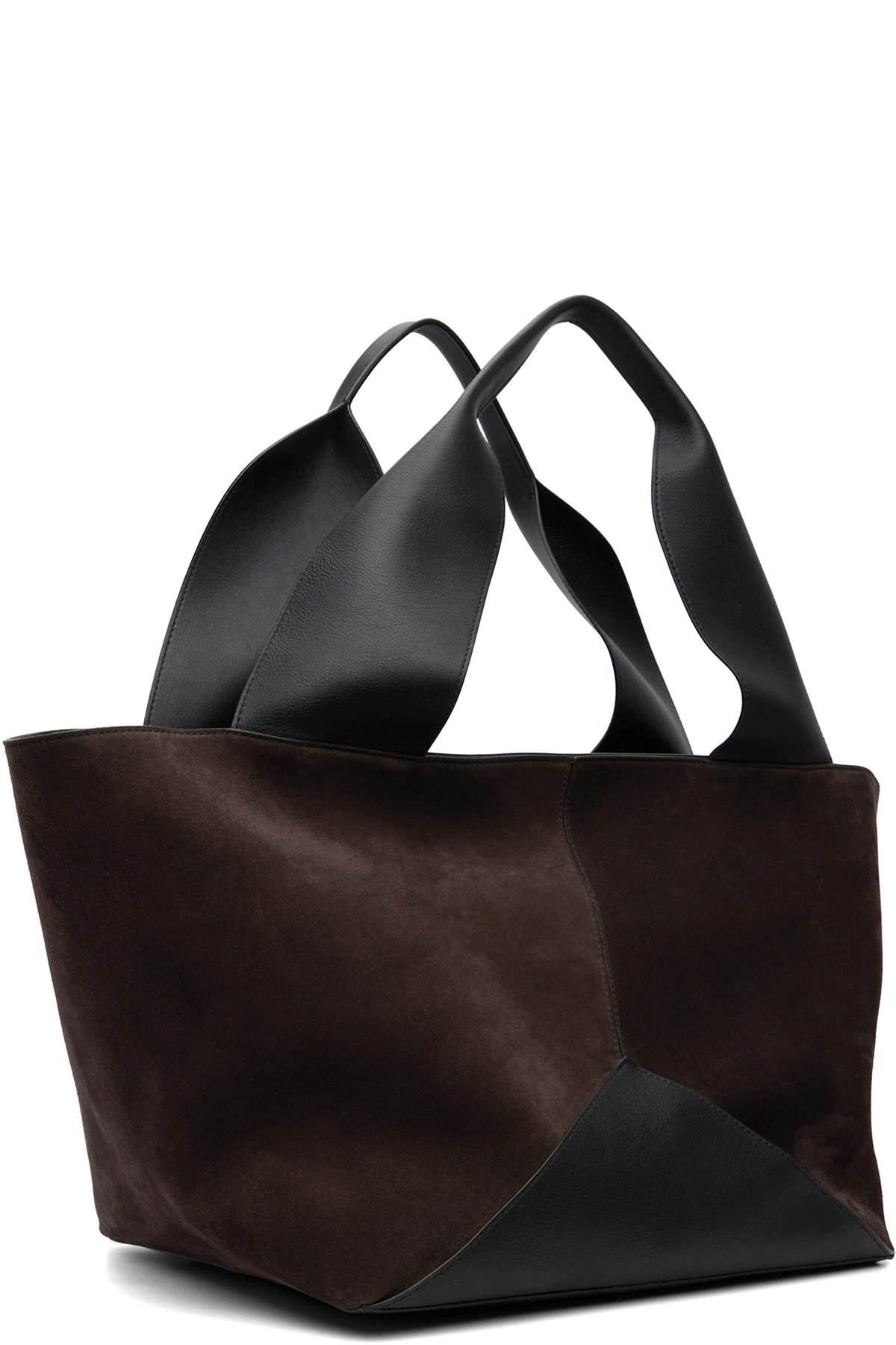 Paneled suede and grained calfskin leather tote.