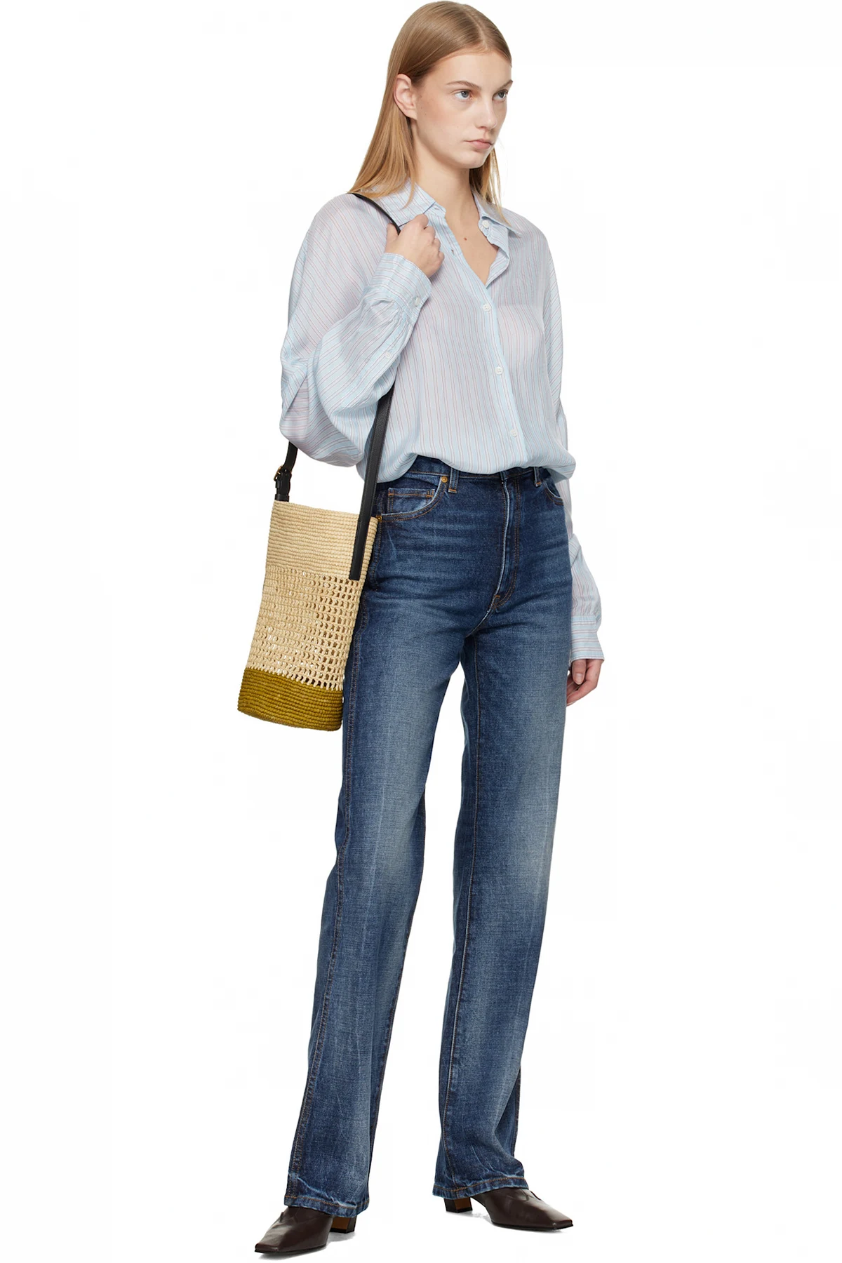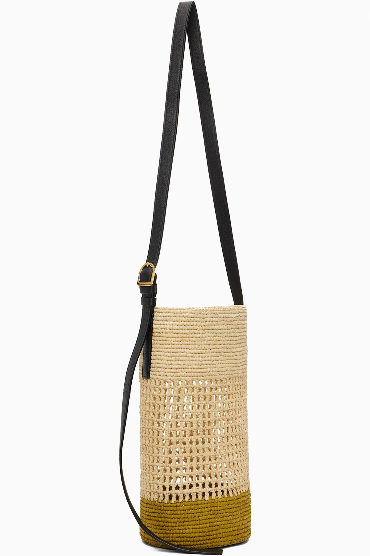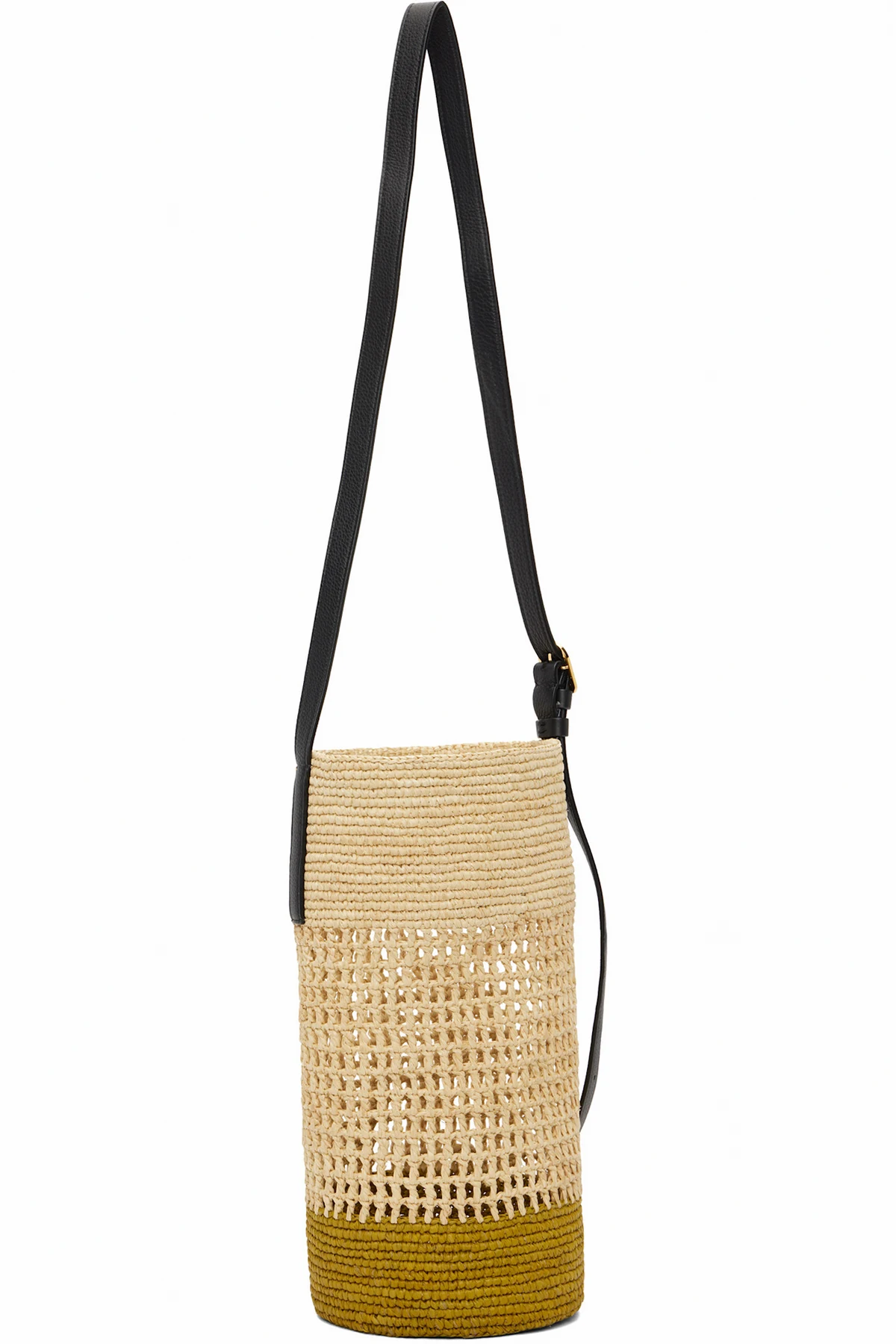 Hand-woven raffia shoulder bag.