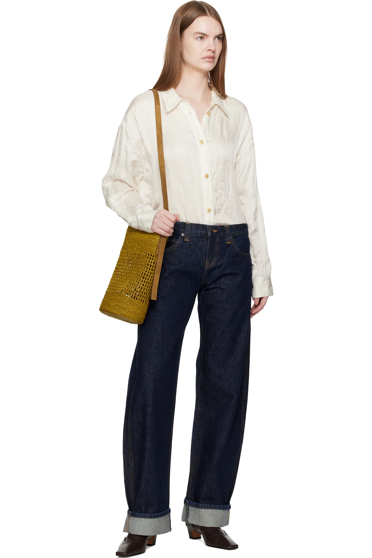 Hand-woven raffia shoulder bag.