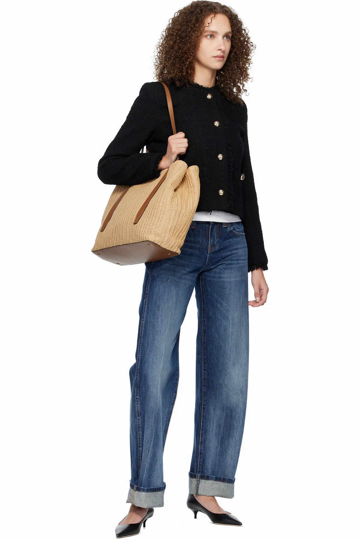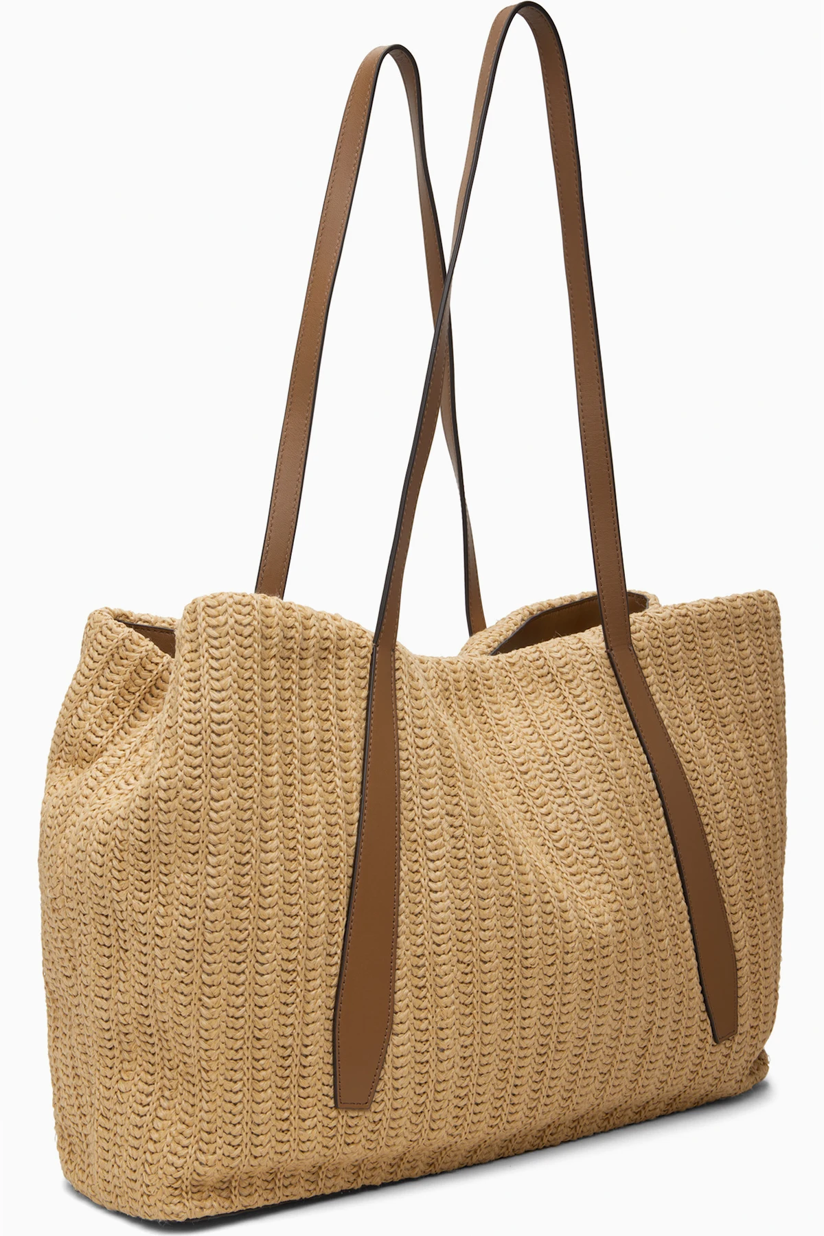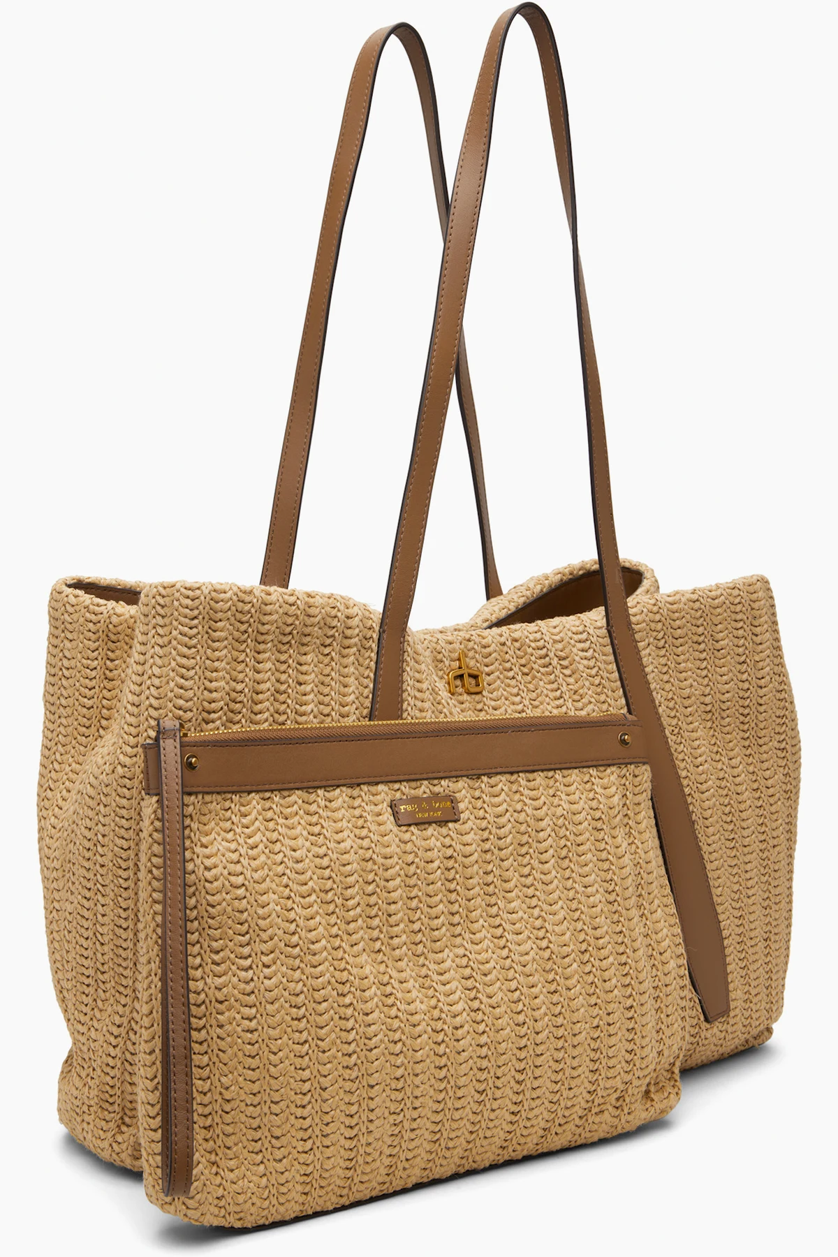 Woven faux-straw tote.