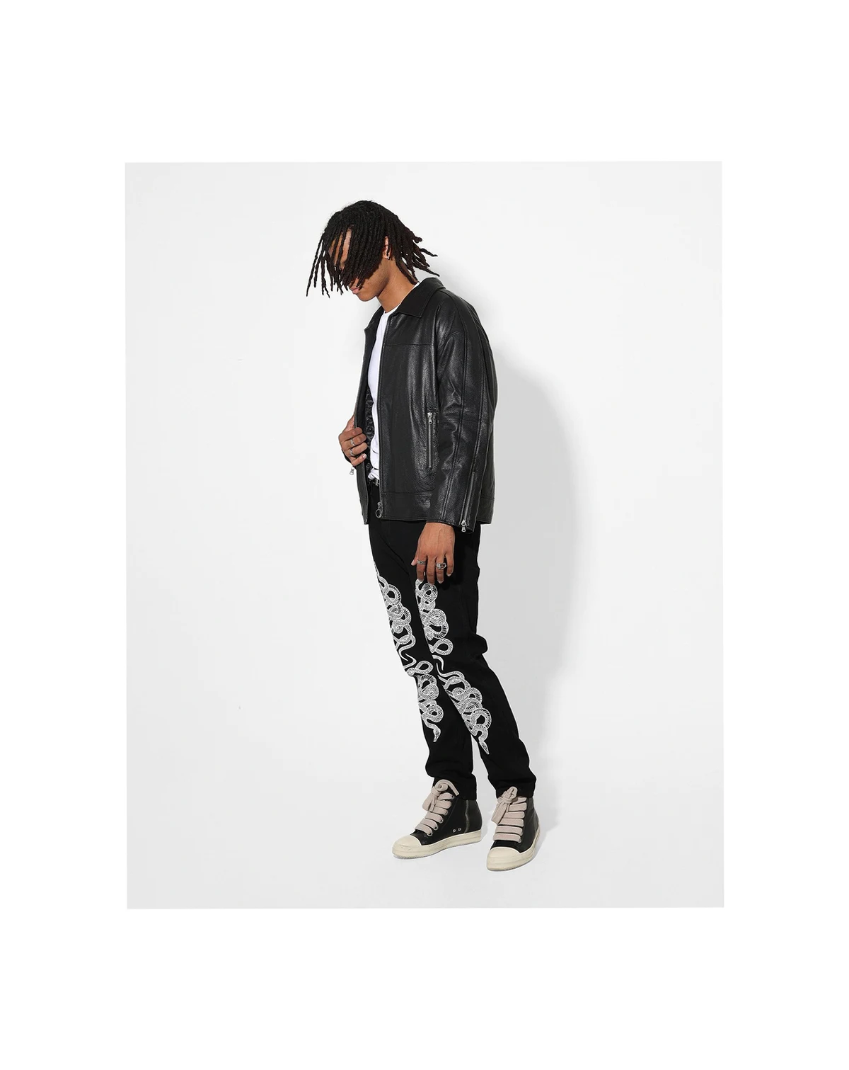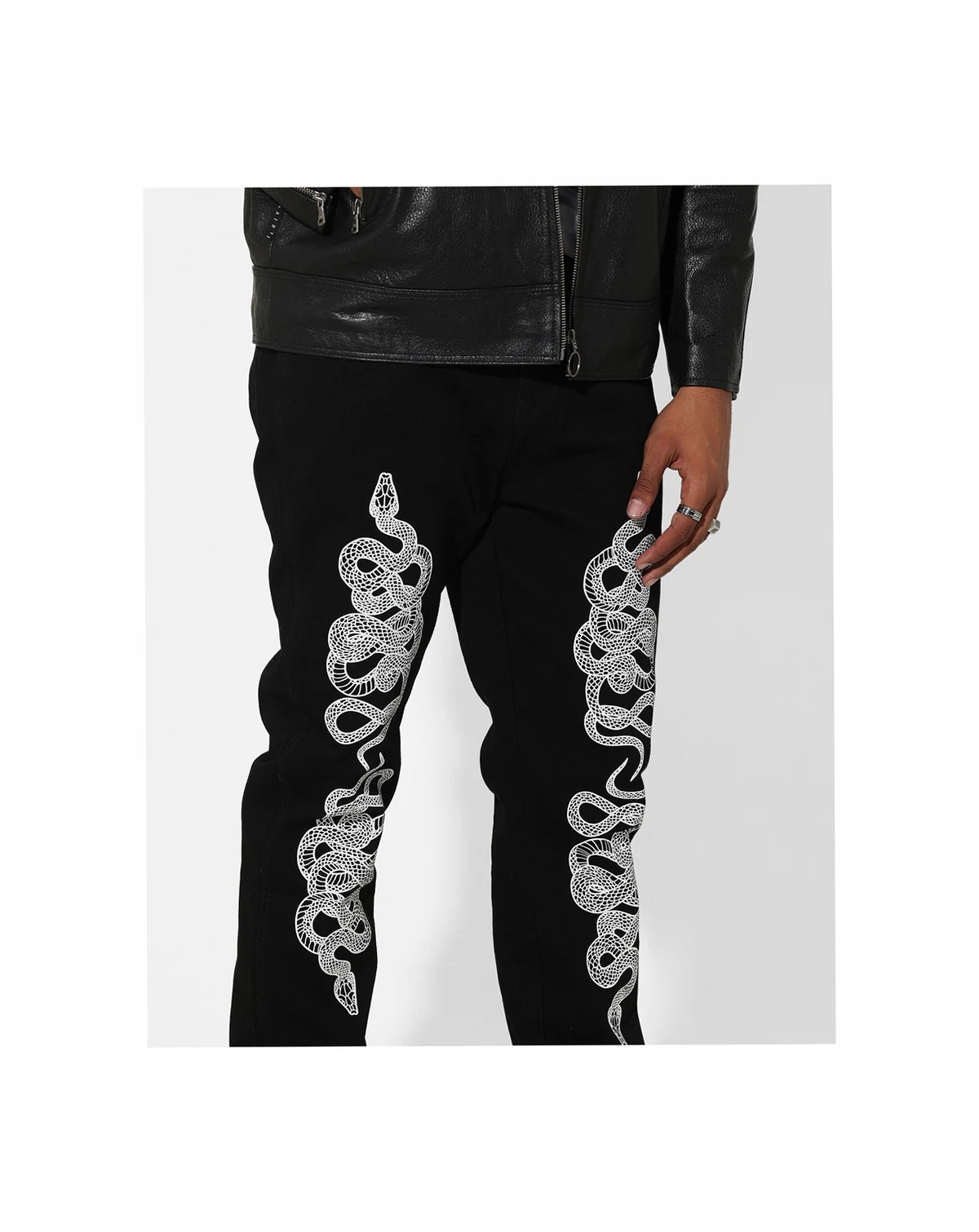 You can't go wrong with a solid pair of jeans like the Death Adder Relaxed Jeans from SAINT MORTA. Featuring relaxed denim, snake print, and SAINT MORTA embroidery.