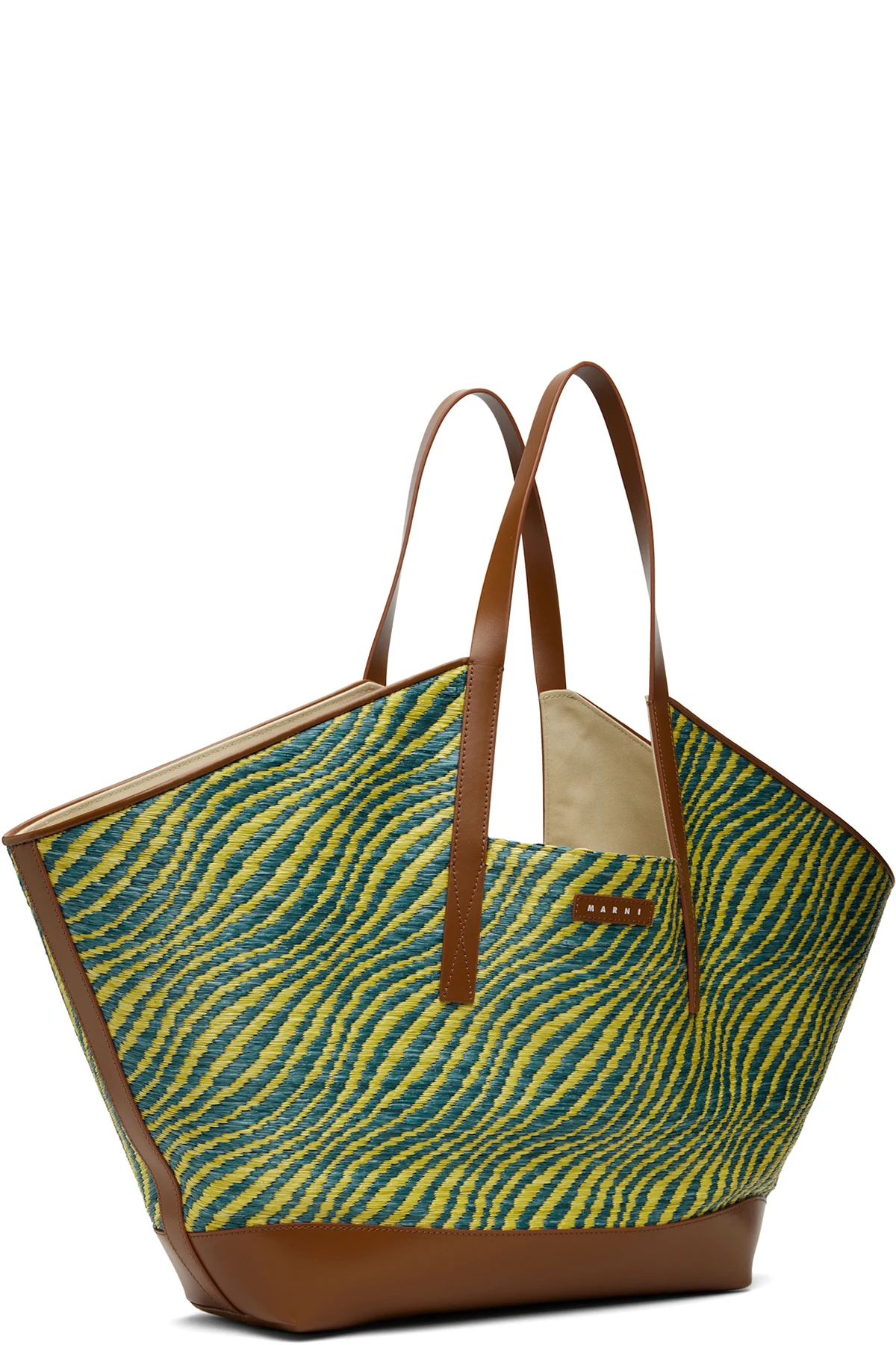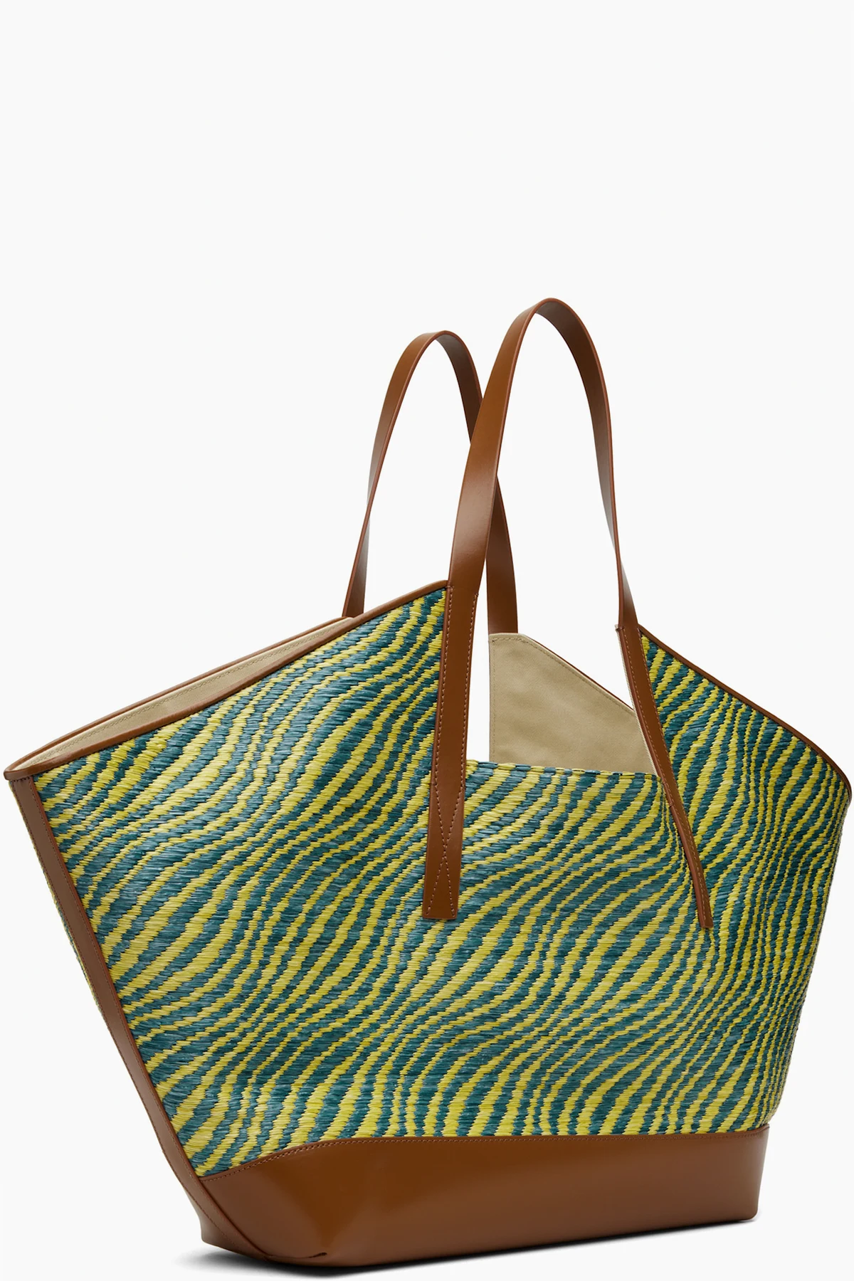 Woven faux-straw tote.