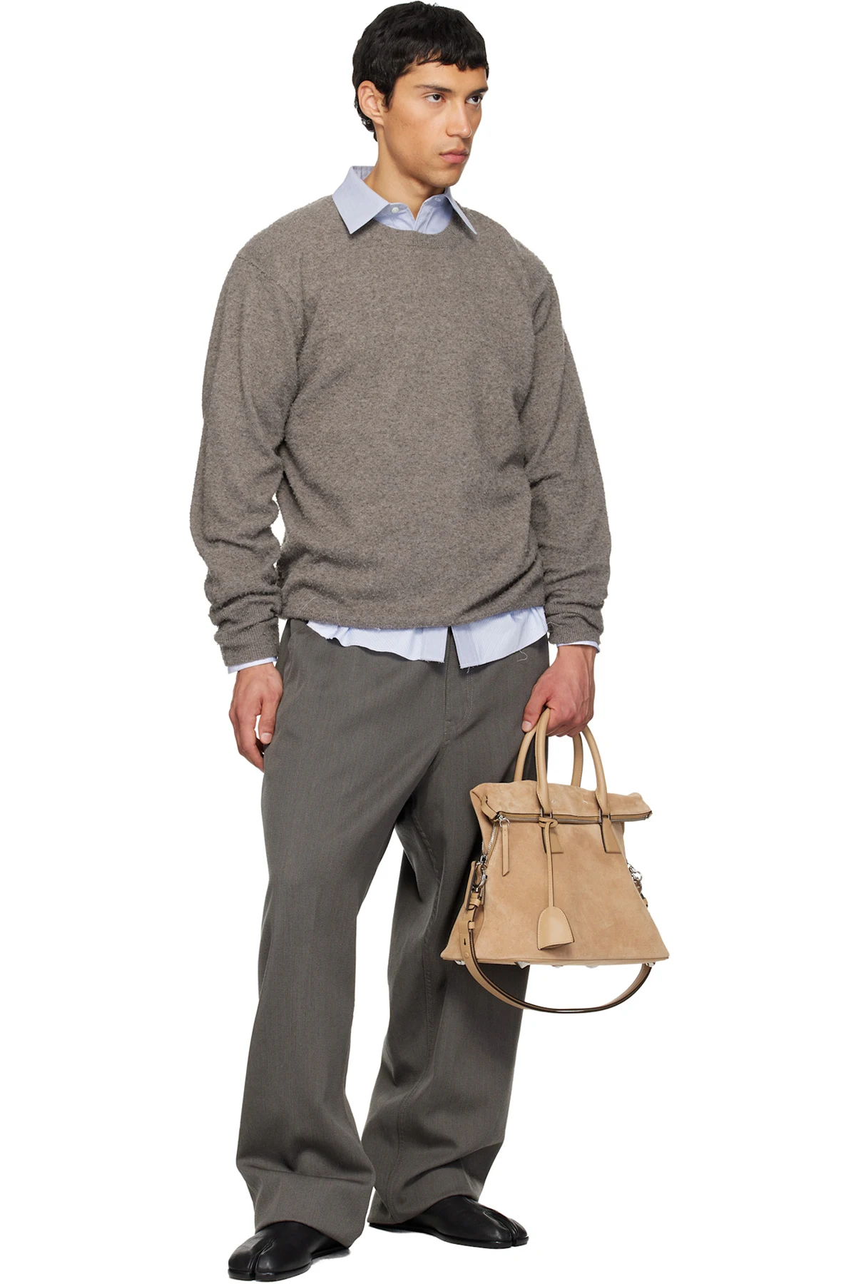 Calfskin suede messenger bag.