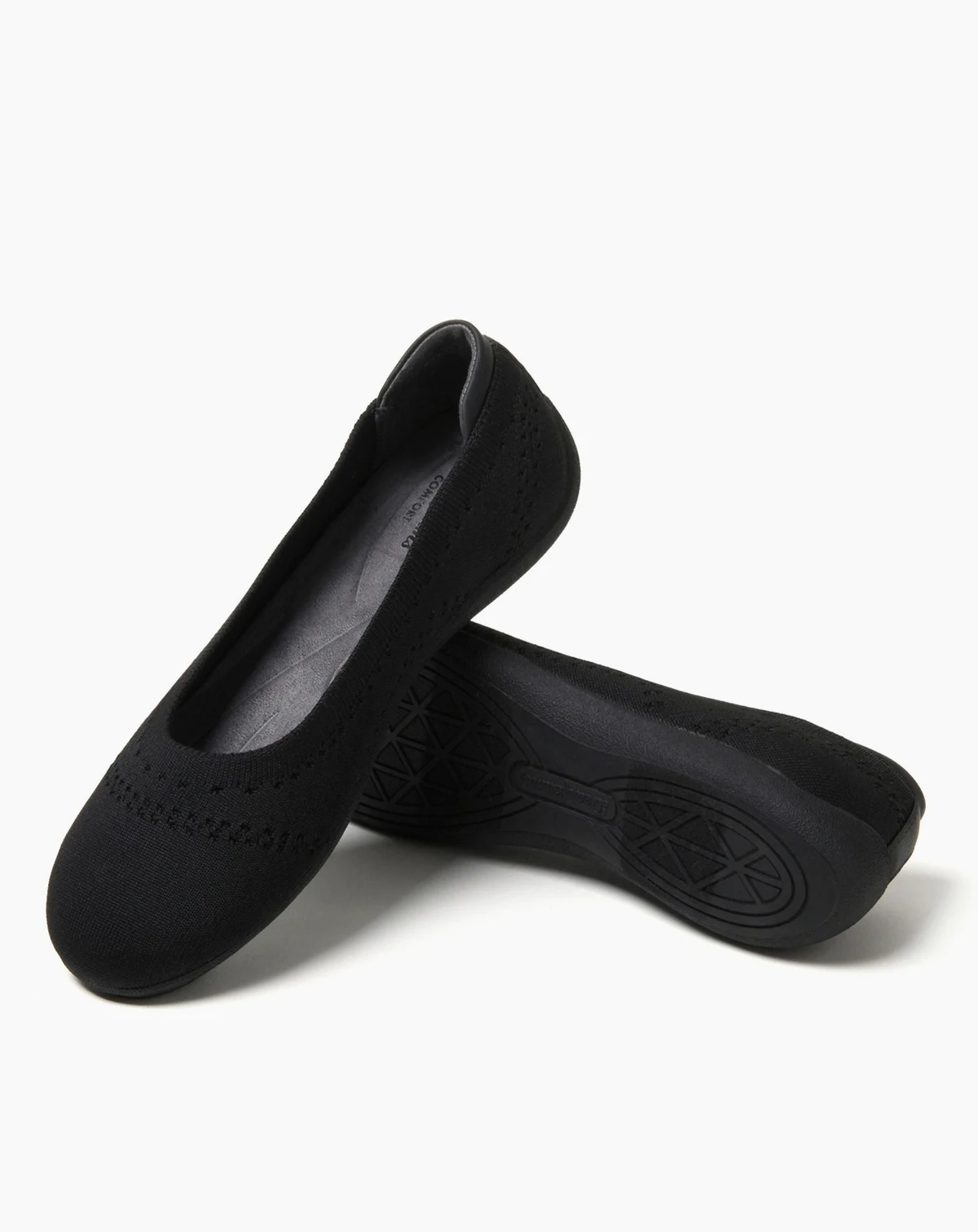 These shock-absorbing shoes offer plenty of arch support for those extra-busy days, and a flexible, breathable knit upper hug your feet for the perfect fit. A contoured footbed with cushiony arch support is lined in soft quilted microfiber with soft foam underneath that mold to your feet. Molded soft rubber outsoles provide durable traction along with stability and flexibility. And with easy on/off designs, these women s shoes are the perfect pick to leave by the door. Need a refresh after a long day? Our ballerina flats are machine washable! Just toss them in on a gentle, cold cycle, and air dry. It's as simple as that.