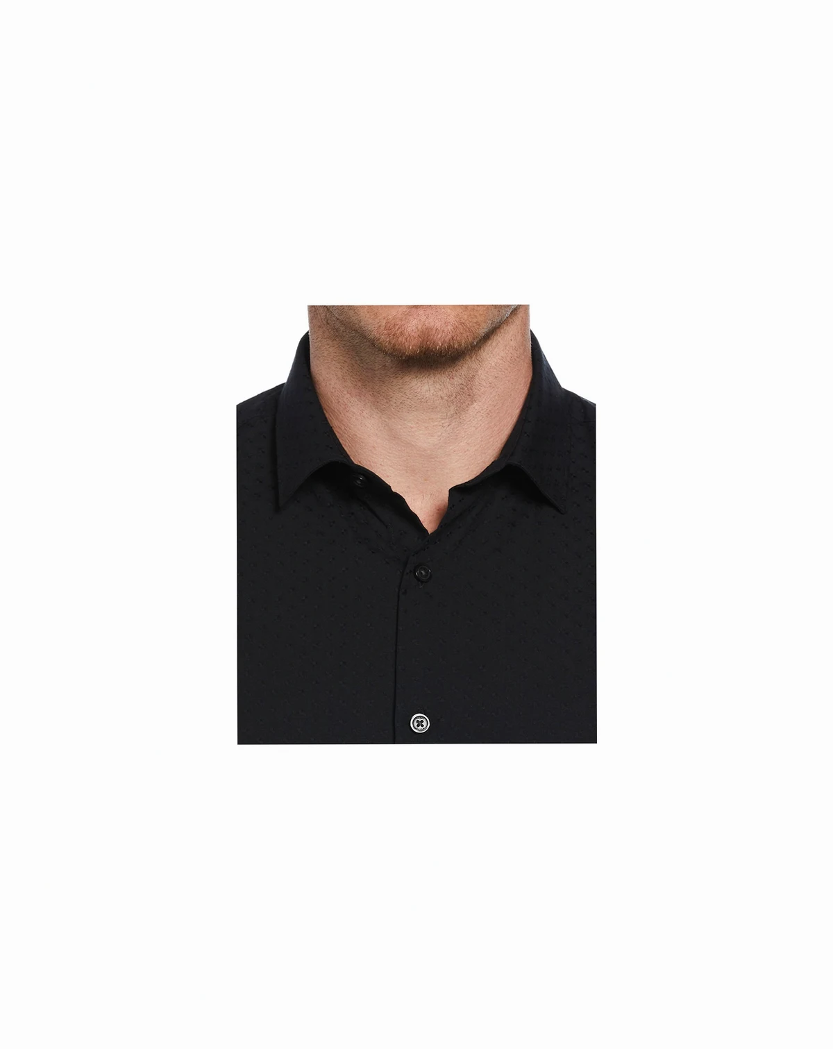 Breathable and essential, this dobby-weave shirt from Perry Ellis brings classic, no-nonsense elegance to your button-down collection.