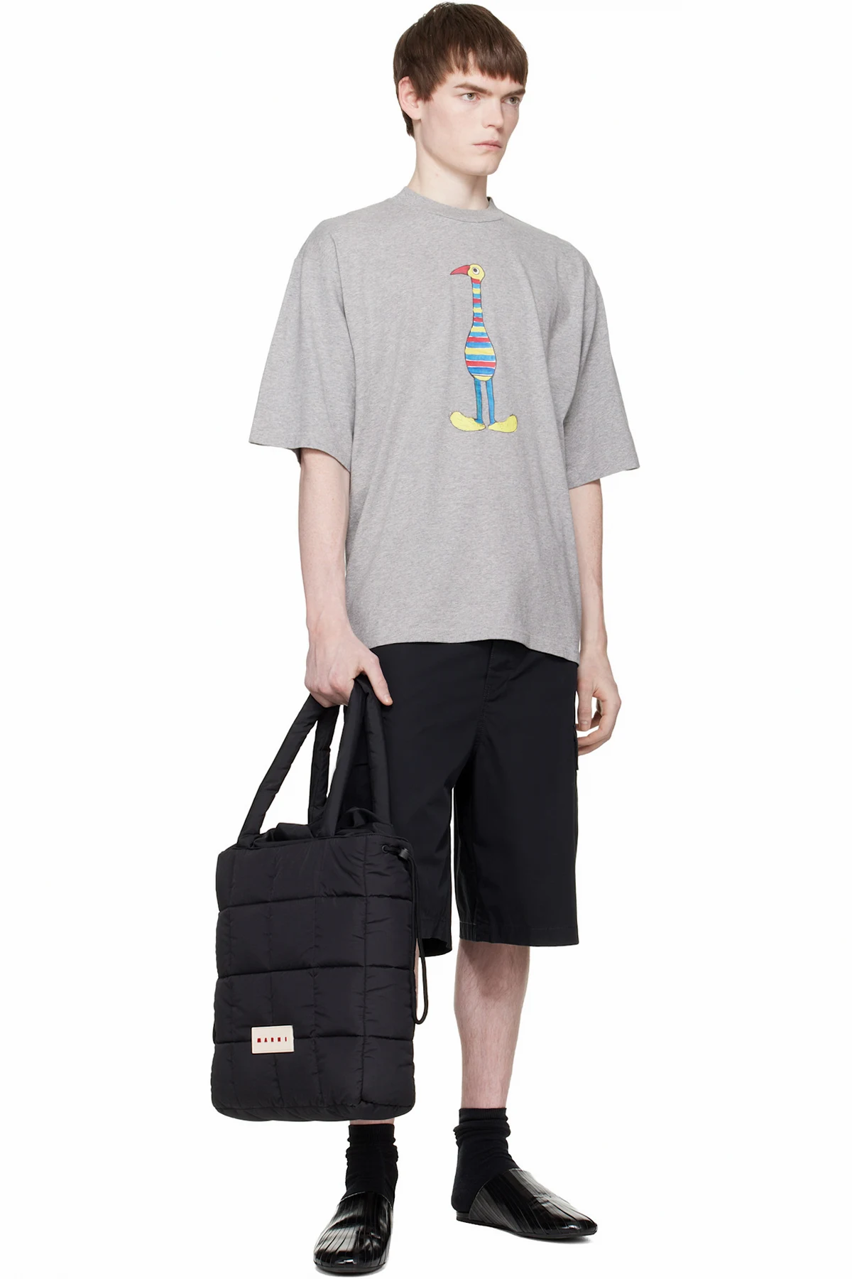 Padded and quilted taffeta tote.