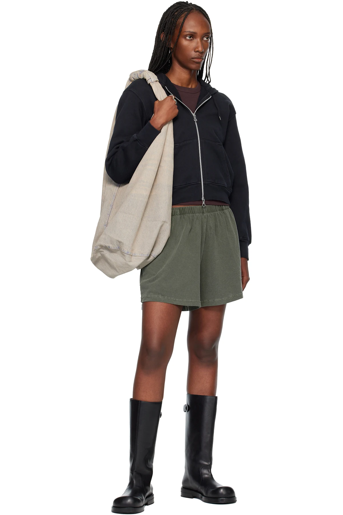 Organic cotton-blend denim shoulder bag.