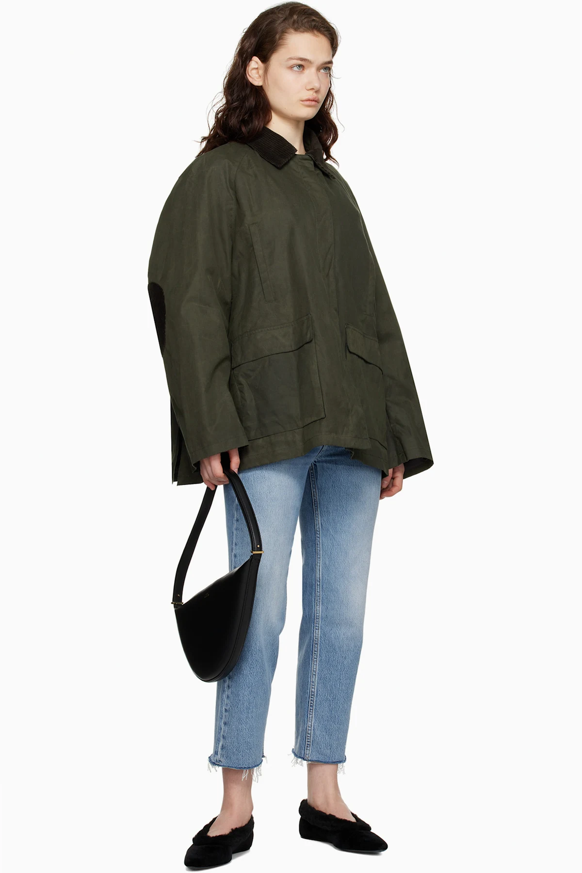 Black Leather Scooped Sling Bag