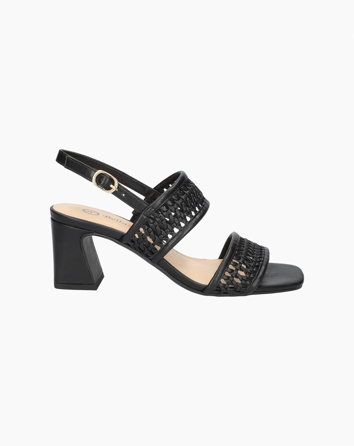 Experience contemporary fashion with Xannon heeled sandals by Bella Vita. Ready to enhance your favorite summer outfits with its on-trend two-banded woven upper with an adjustable slingback for a more custom fit. The new contemporary underslung block heel and square toe offers an added element of fashion. Padded insole for added comfort.