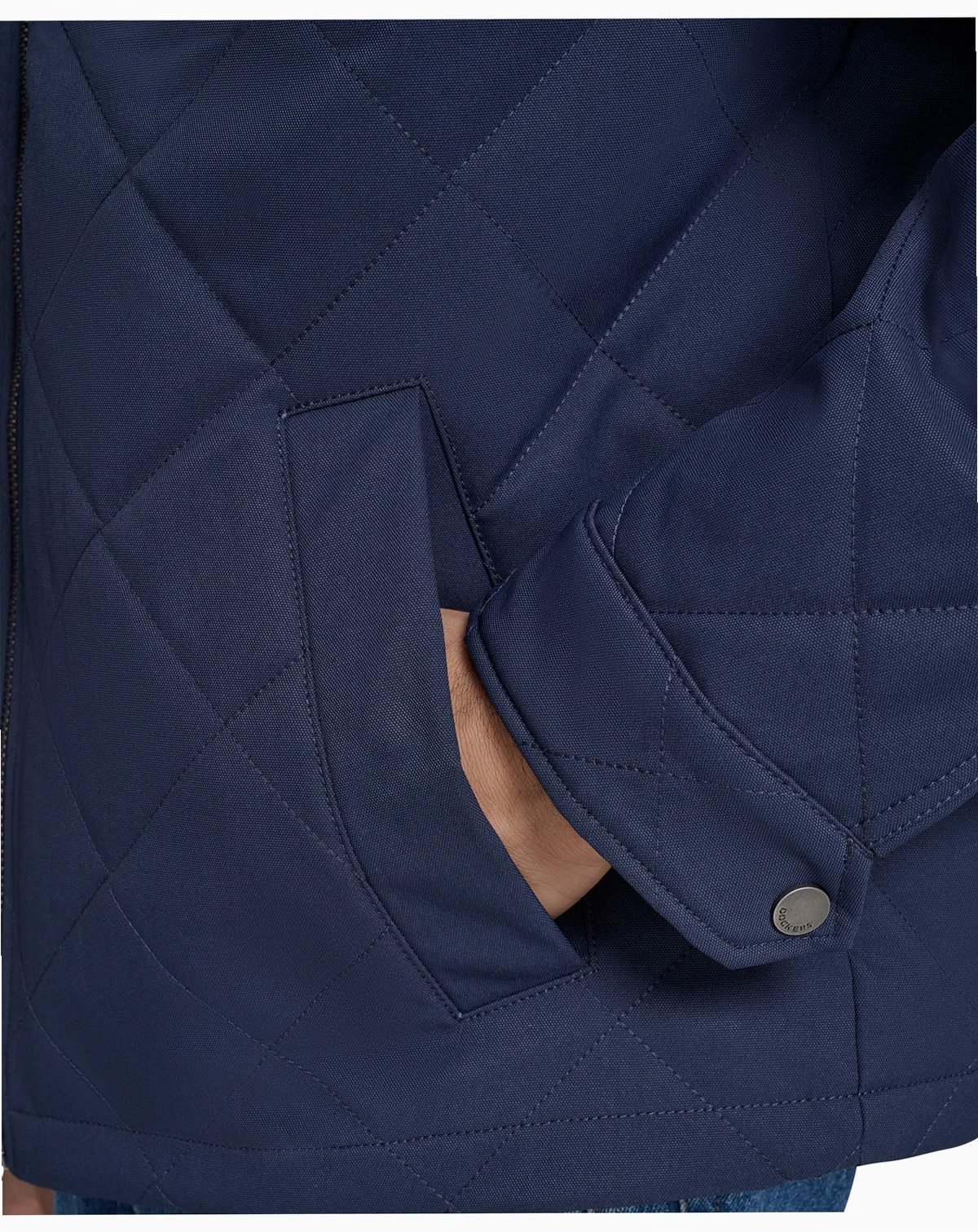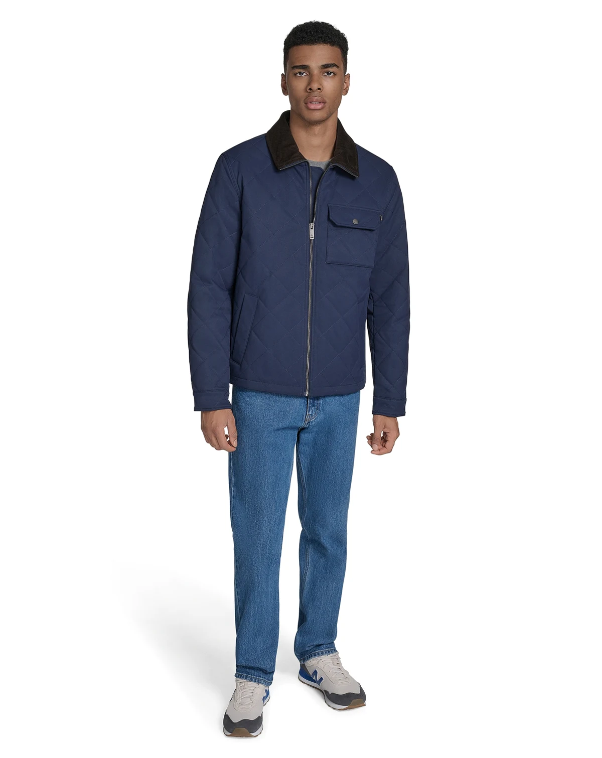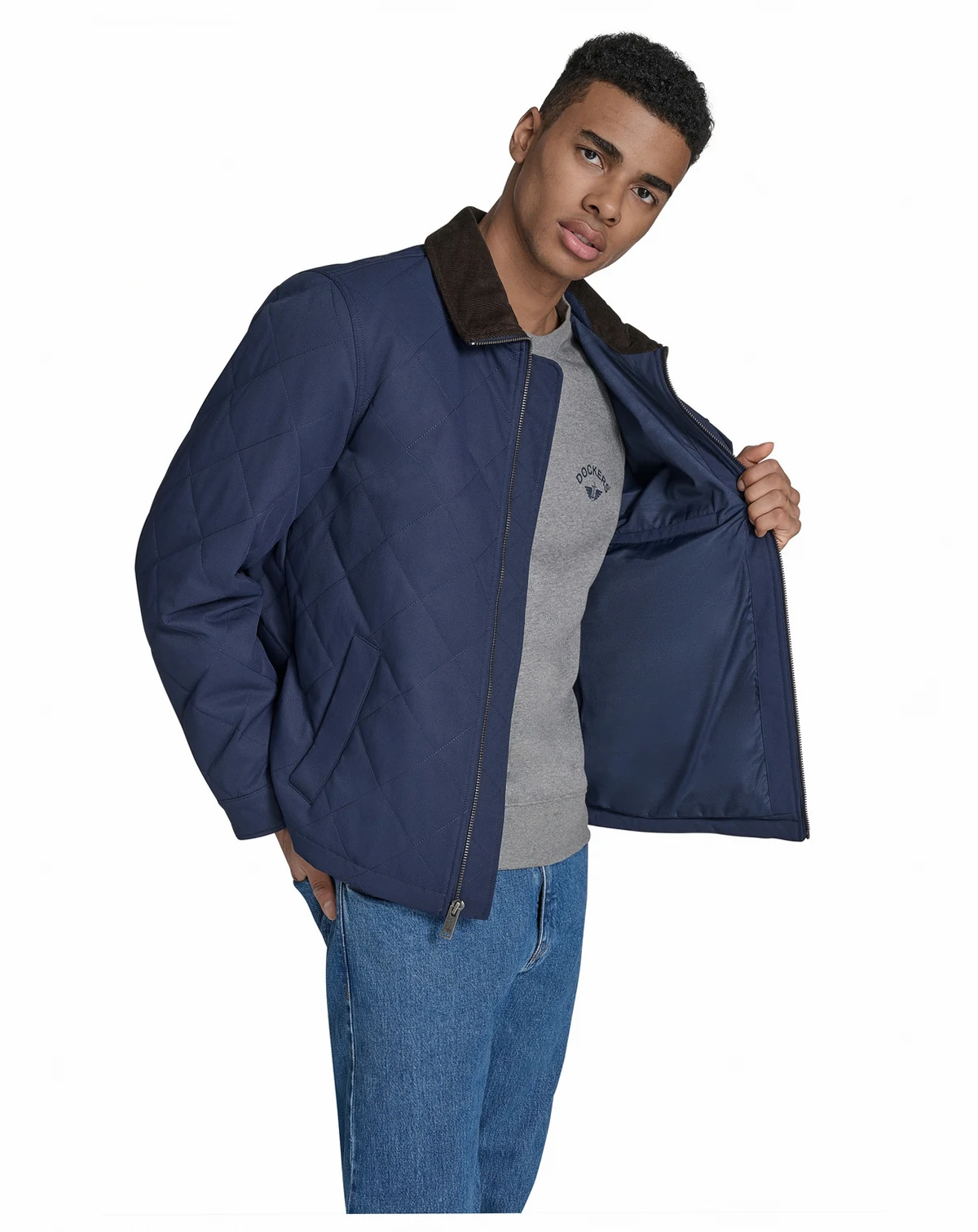 Elevate your outerwear with the Dockers Men's Diamond Quilted Jacket a cold-weather essential. Designed with a classic laydown collar and diamond quilted stitching, this jacket offers both warmth and timeless style. Whether you're heading to the office or out for the weekend, this jacket delivers a polished, comfortable look built for everyday wear.