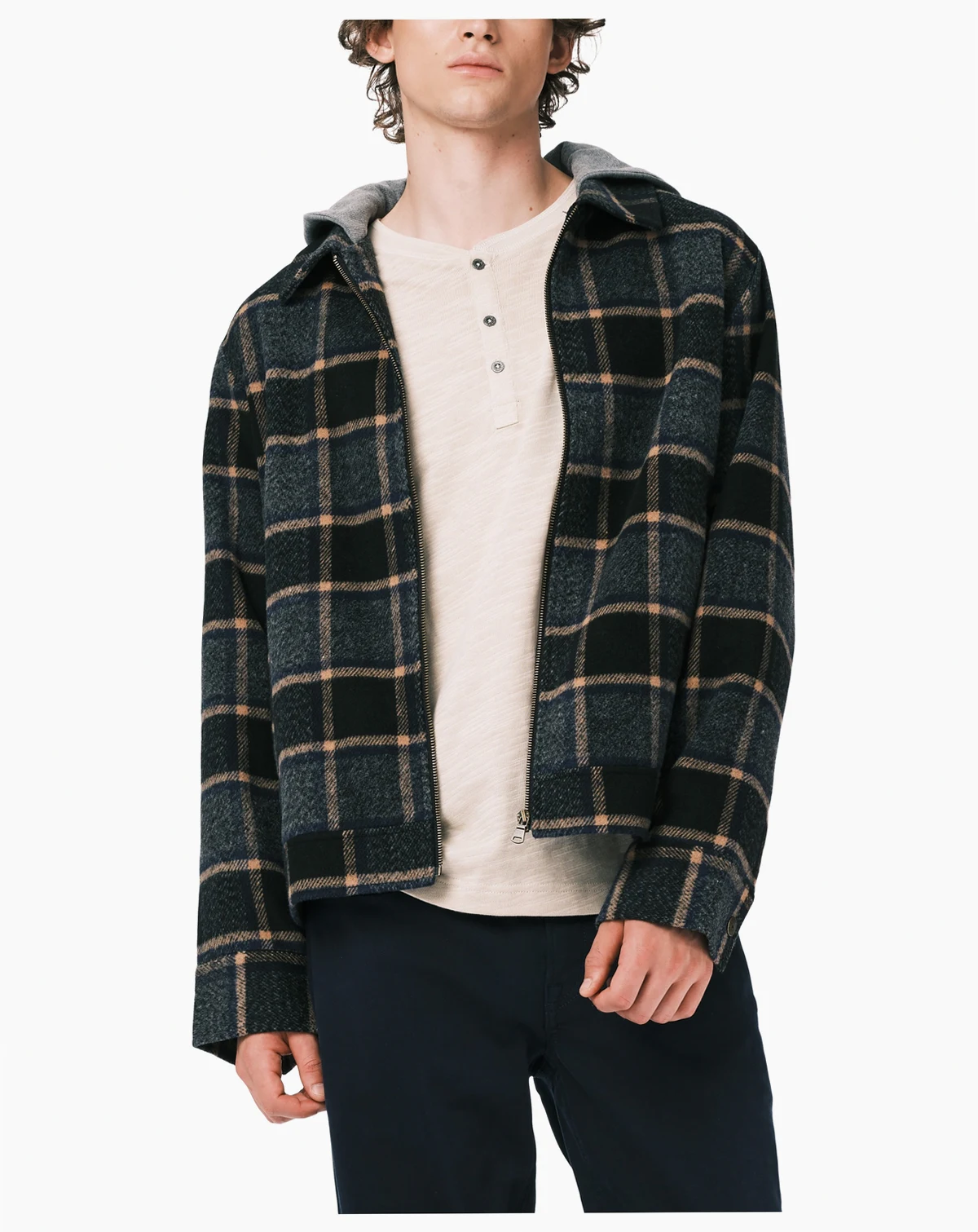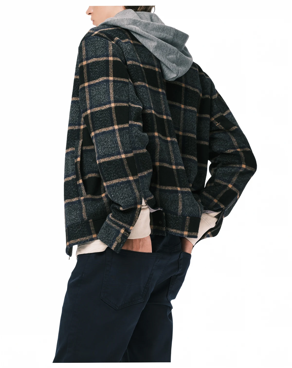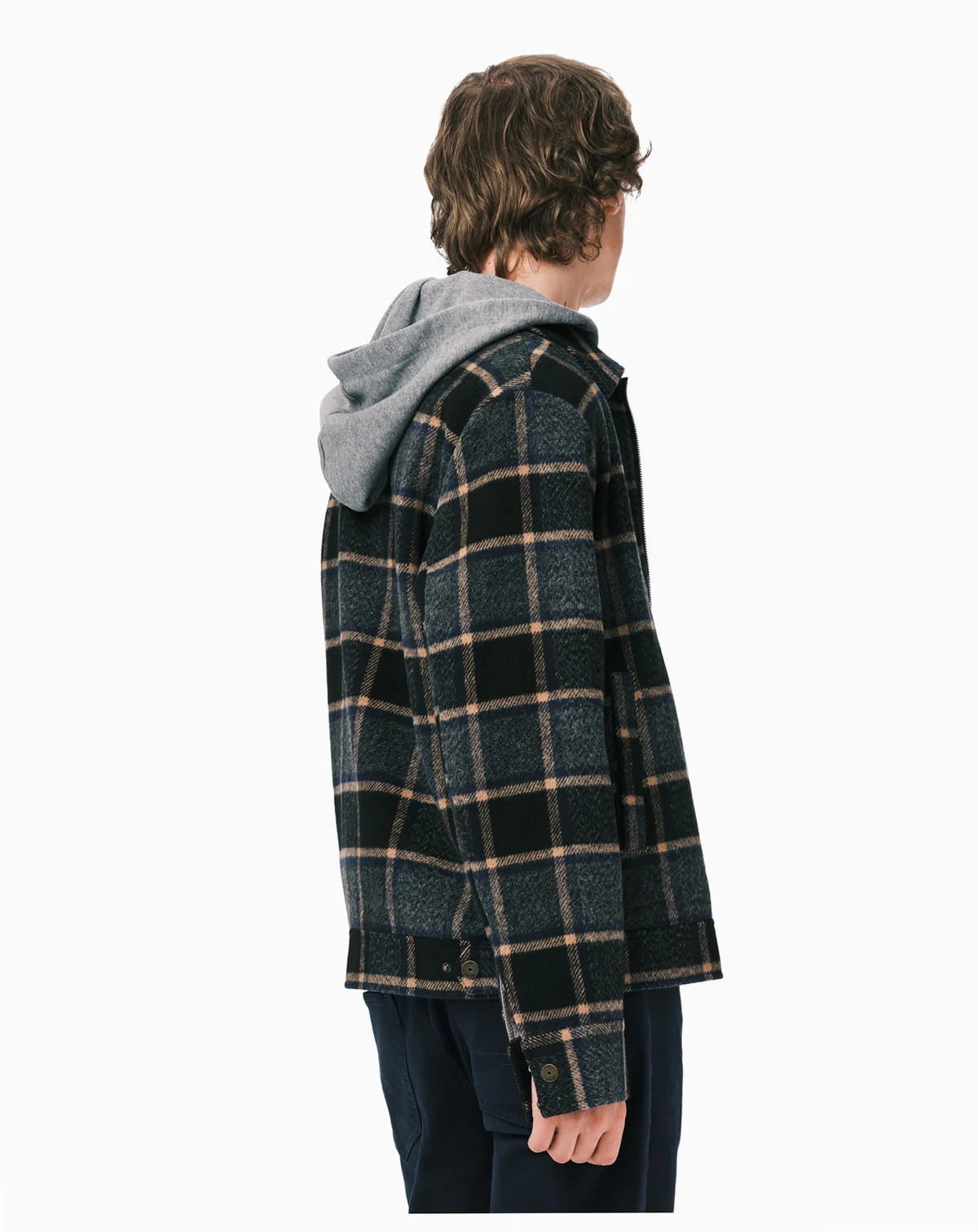 Embrace vintage inspiration with this Buffalo David Bitton jacket featuring a relaxed boxy silhouette. Substantial plaid fabric and welt pockets combine structure with casual comfort. The jersey hood adds contrasting texture and comfortable coverage. Adjustable side tabs allow for customized fit and personal style.