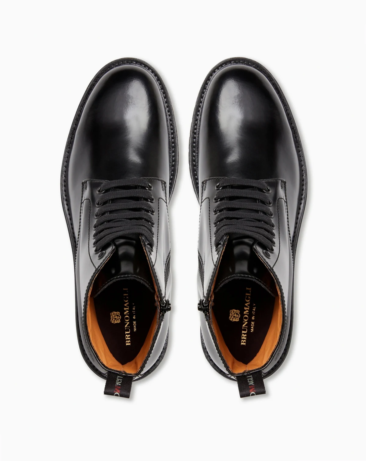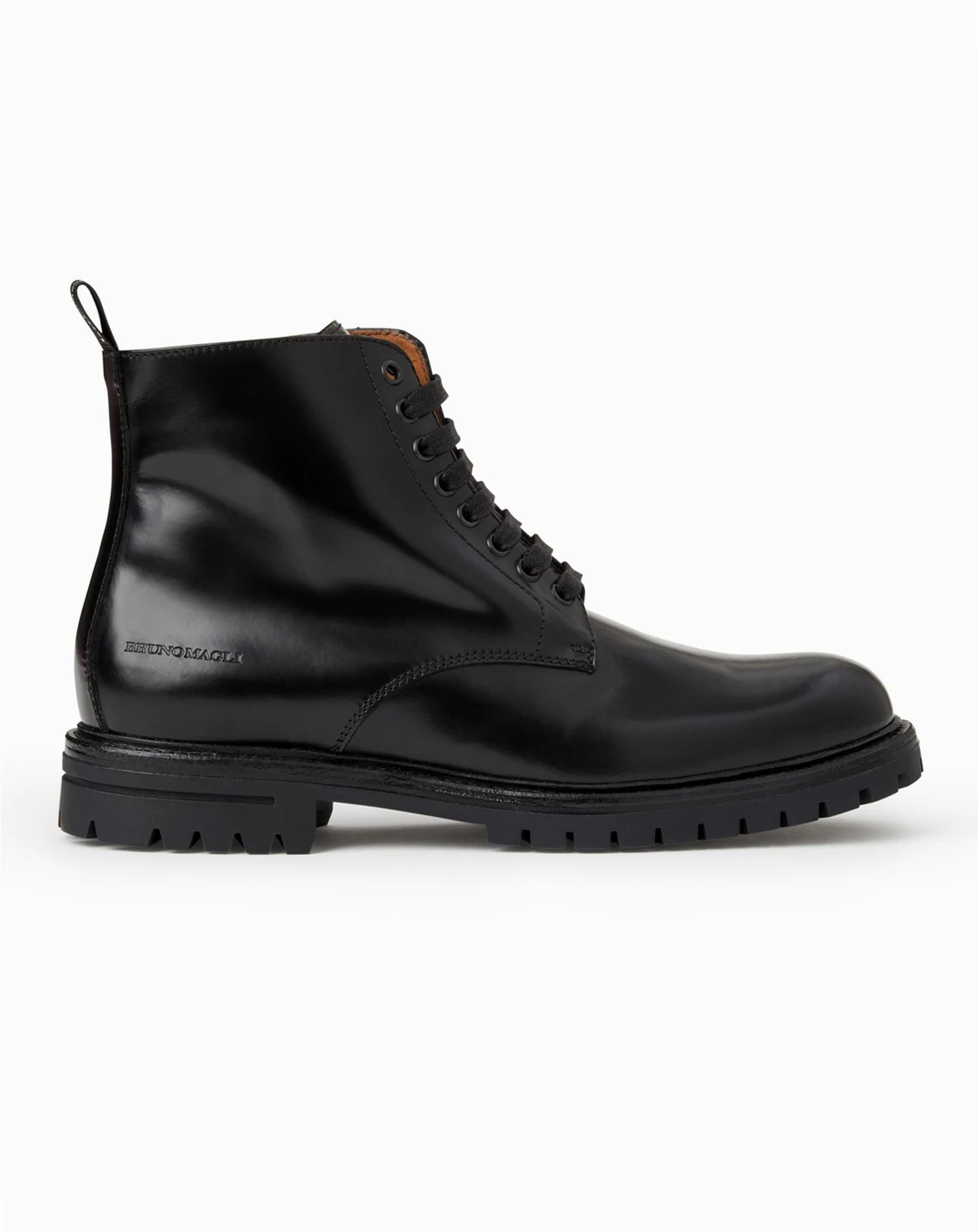 Soon to be a classic in our boot collection. A traditional 6" leather upper placed on an updated rubber lug outsole. A medial zipper for easy access to the boot. Bruno Magli embossed logo on the heel counter along with a logoed heel tab.