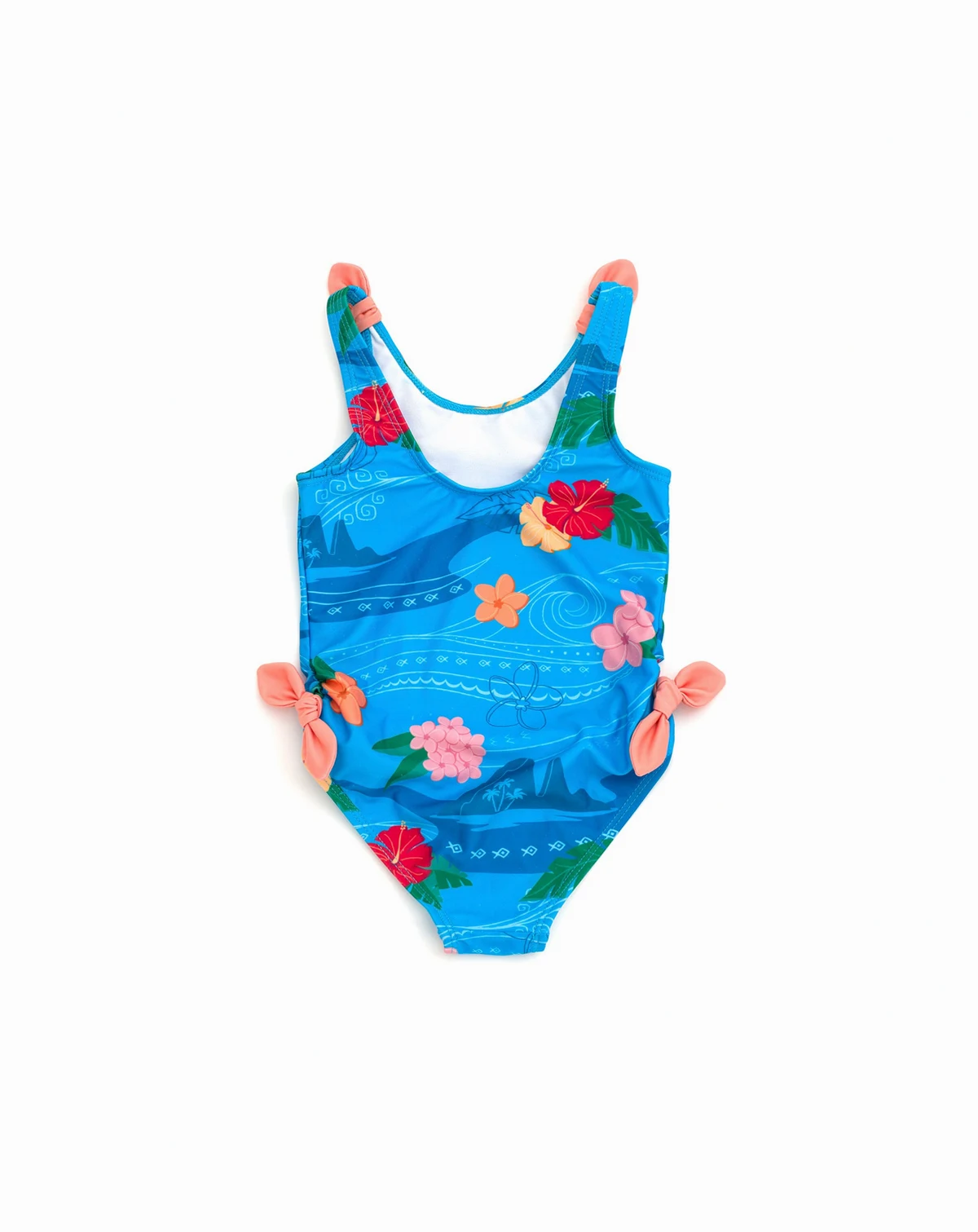 Prepare your little explorer for a sea adventure with this Disney Moana swimsuit. Stylish one-piece with side cut outs, tie knot design, and Moana artwork. Perfect for beach days!
