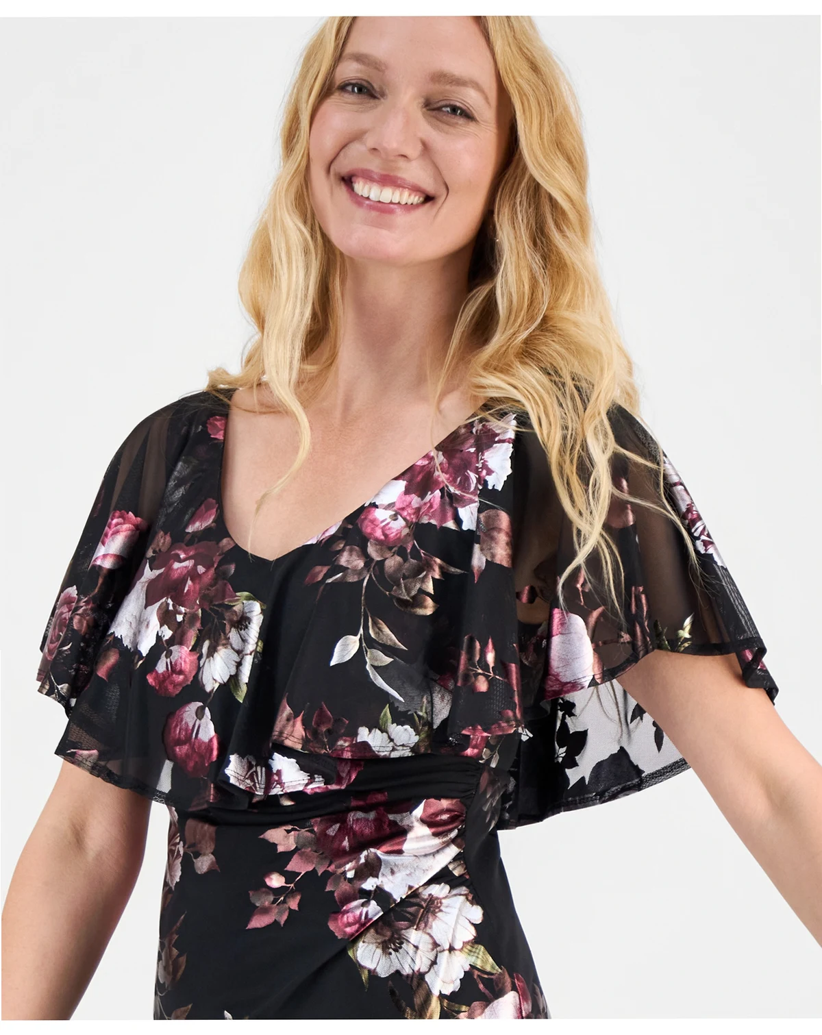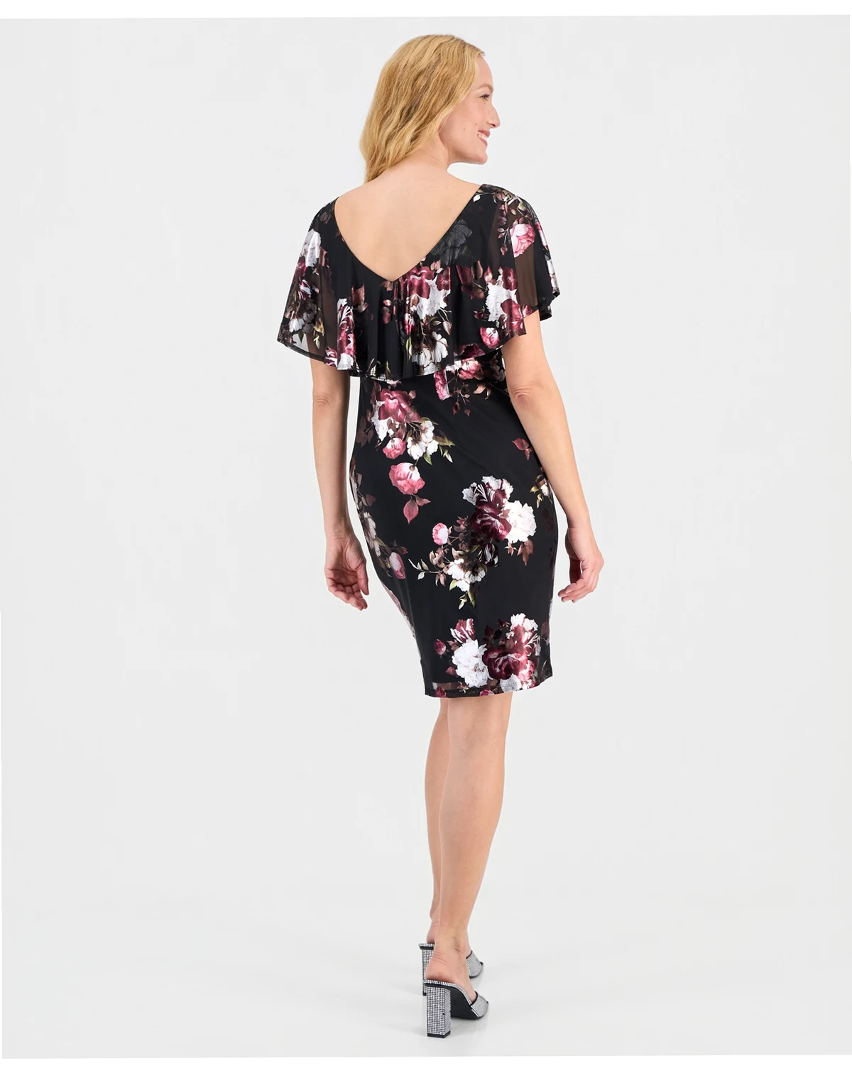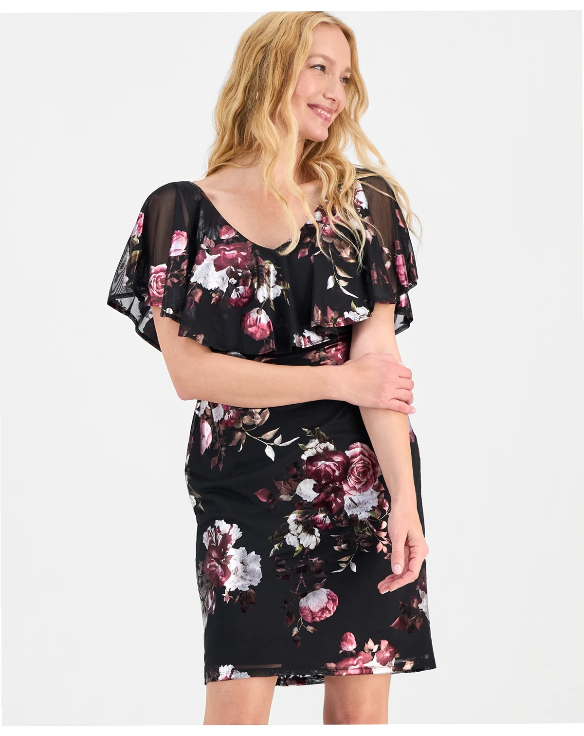 A sleek silhouette gets lively movement from a neckline-tracing ruffle on this sheath dress from Connected.