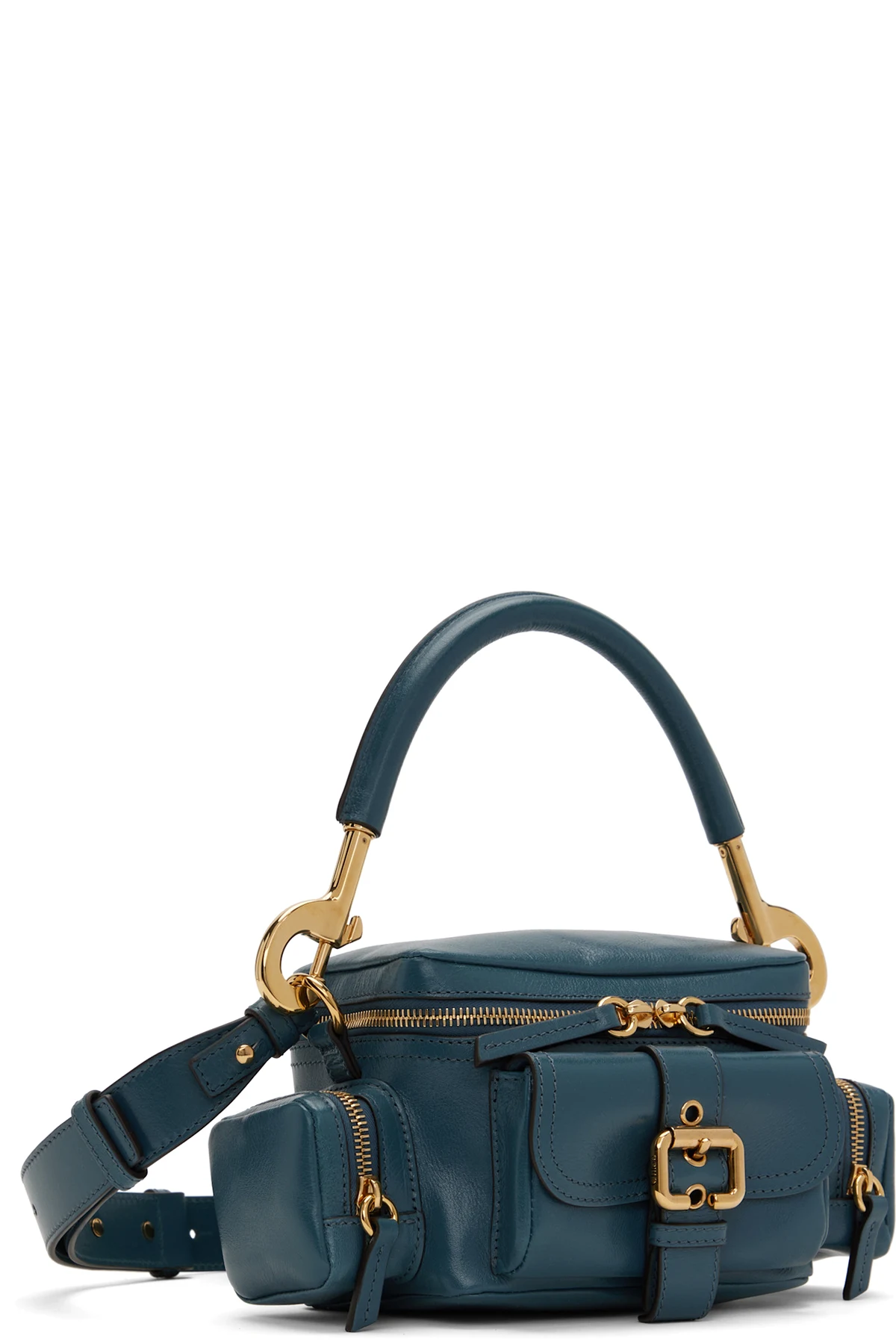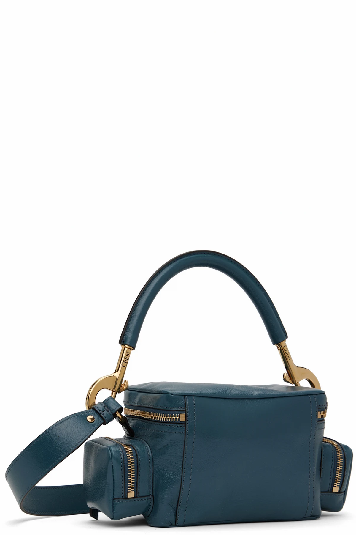 LWG-certified grained buffalo leather shoulder bag in blue.