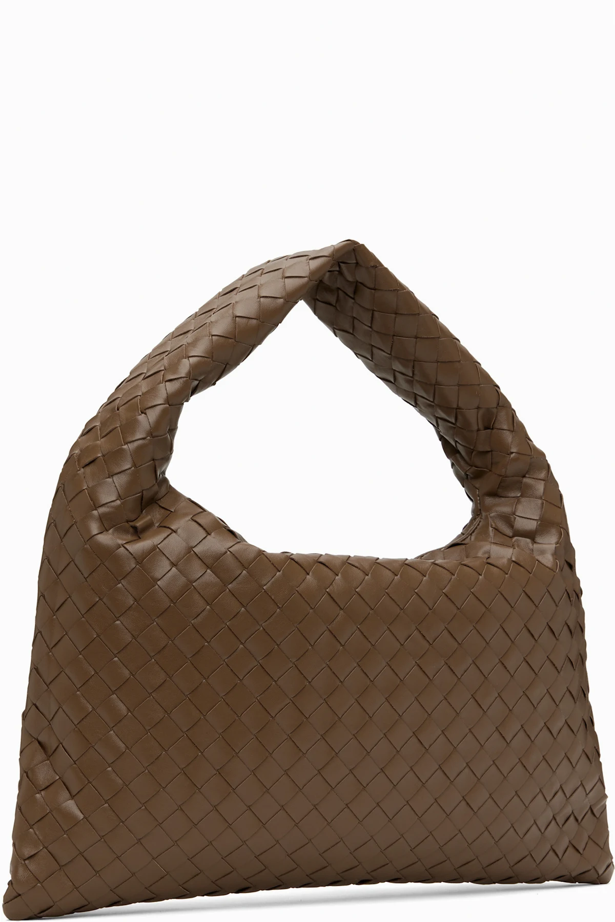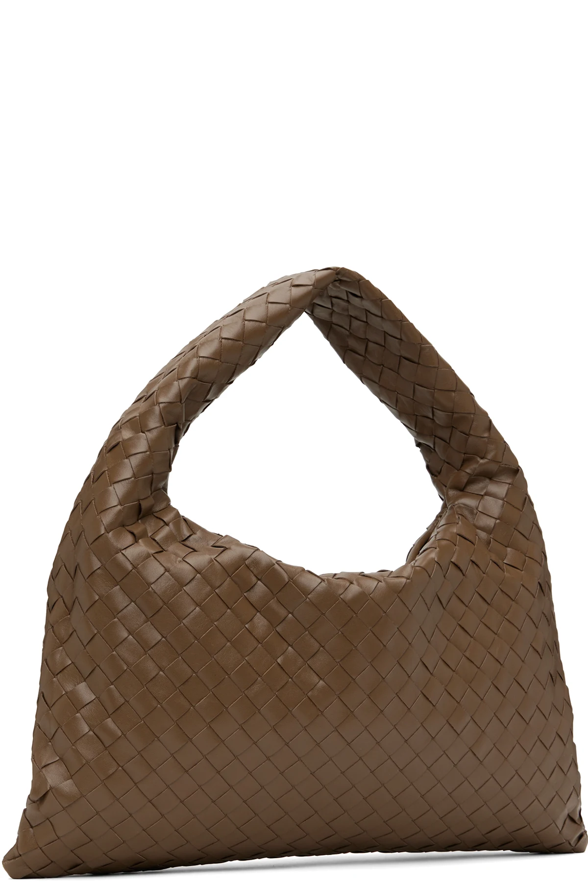 Intrecciato-woven grained calfskin shoulder bag in taupe.