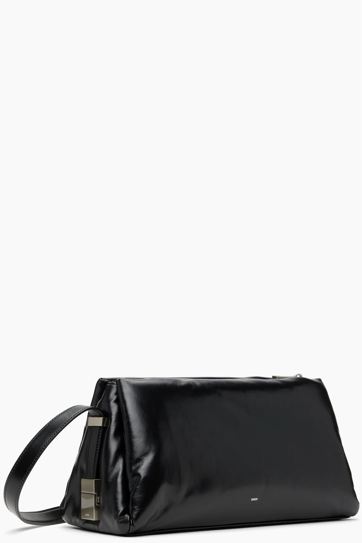 Buffed leather shoulder bag in black.