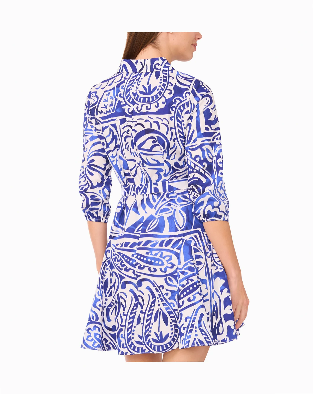 Enjoy a fresh, woven look in this MSK dress, designed in a classic shirt dress style with a collared neck. The 3/4-sleeves and a button-front closure create a polished appearance.