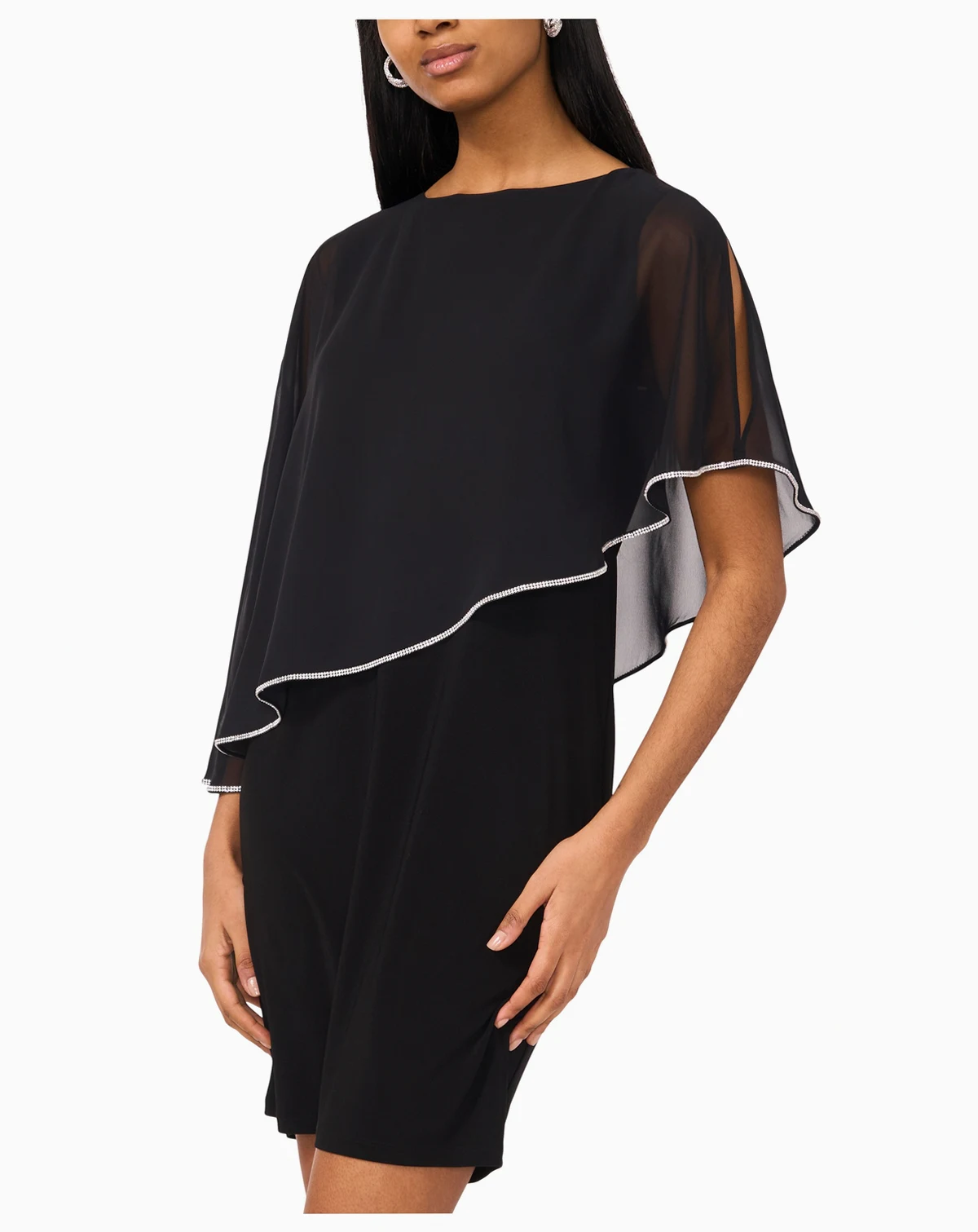 Shell: 95% polyester, 5% spandex; overlay: 100% polyester; IMPORTANT NOTE: This item arrives with a return tag attached and instructions for removal. Once the tag is removed from the dress, this item cannot be returned.