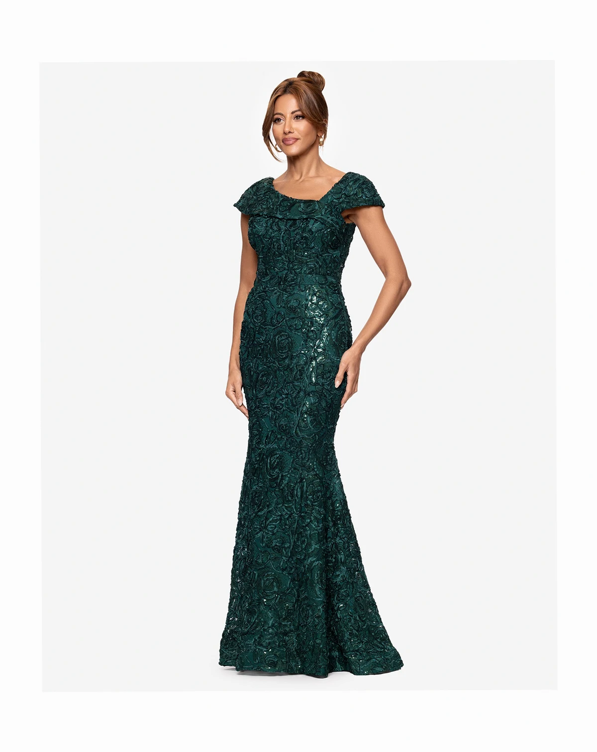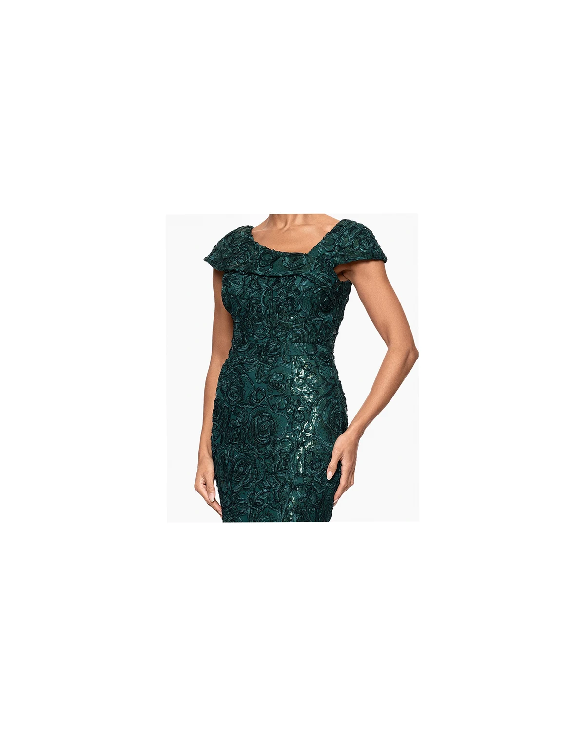 Step into sophistication with this XSCAPE soutache embellished floor length dress, designed to contour the figure with graceful ease. Perfect for weddings, evening galas, and milestone occasions, this delivers understated glamour with every wear.