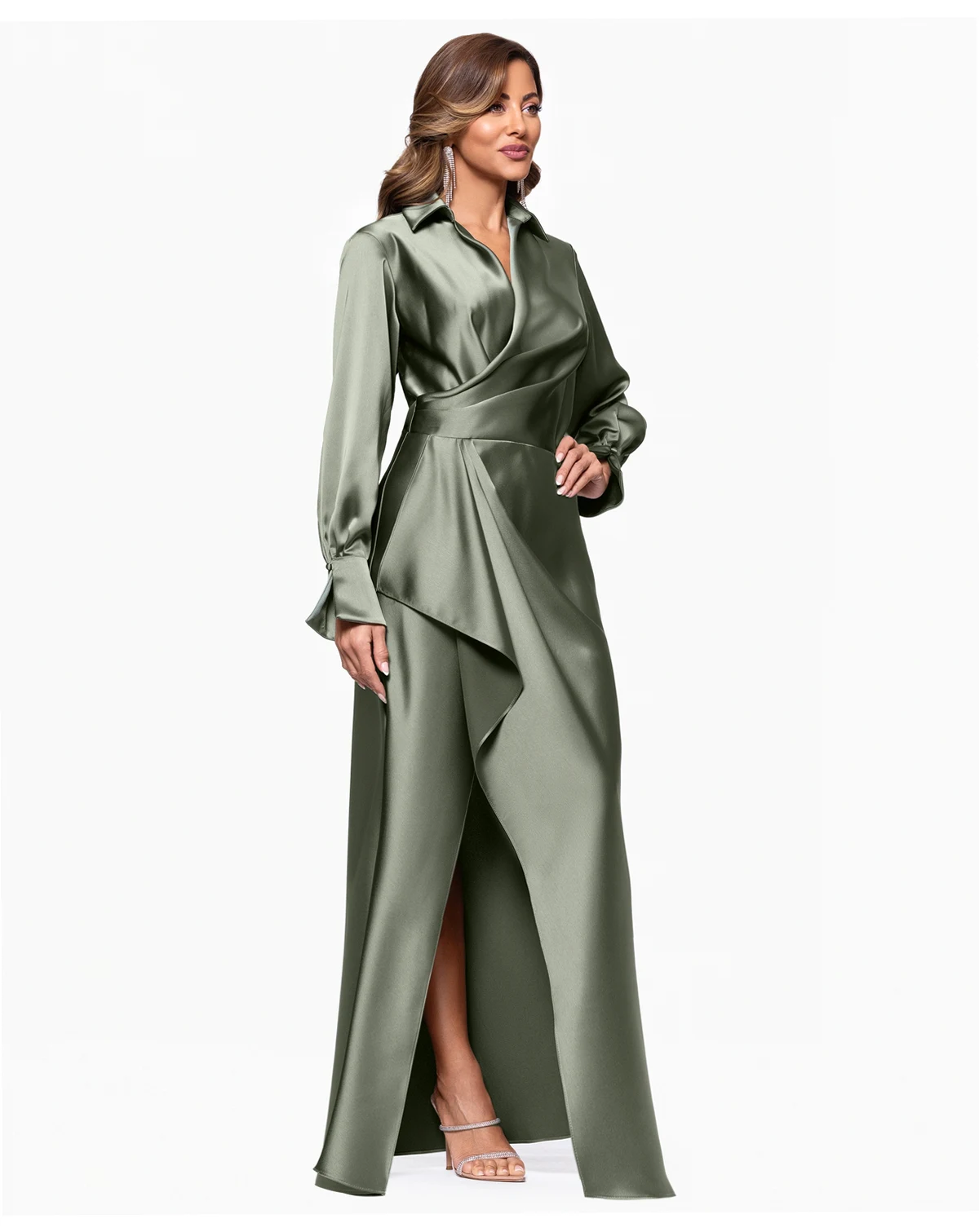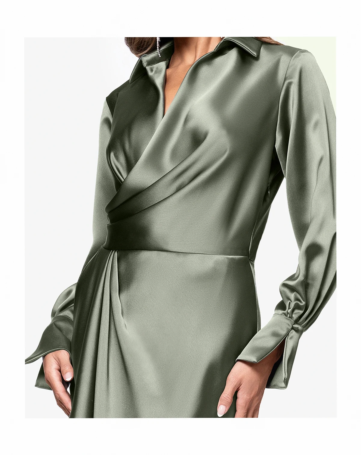 Redefine your wardrobe with the perfect blend of sophistication and style with this chic women's petite shirt dress by XSCAPE. Featuring a convenient collared neck pattern and long sleeves, it is a worthy buy.
