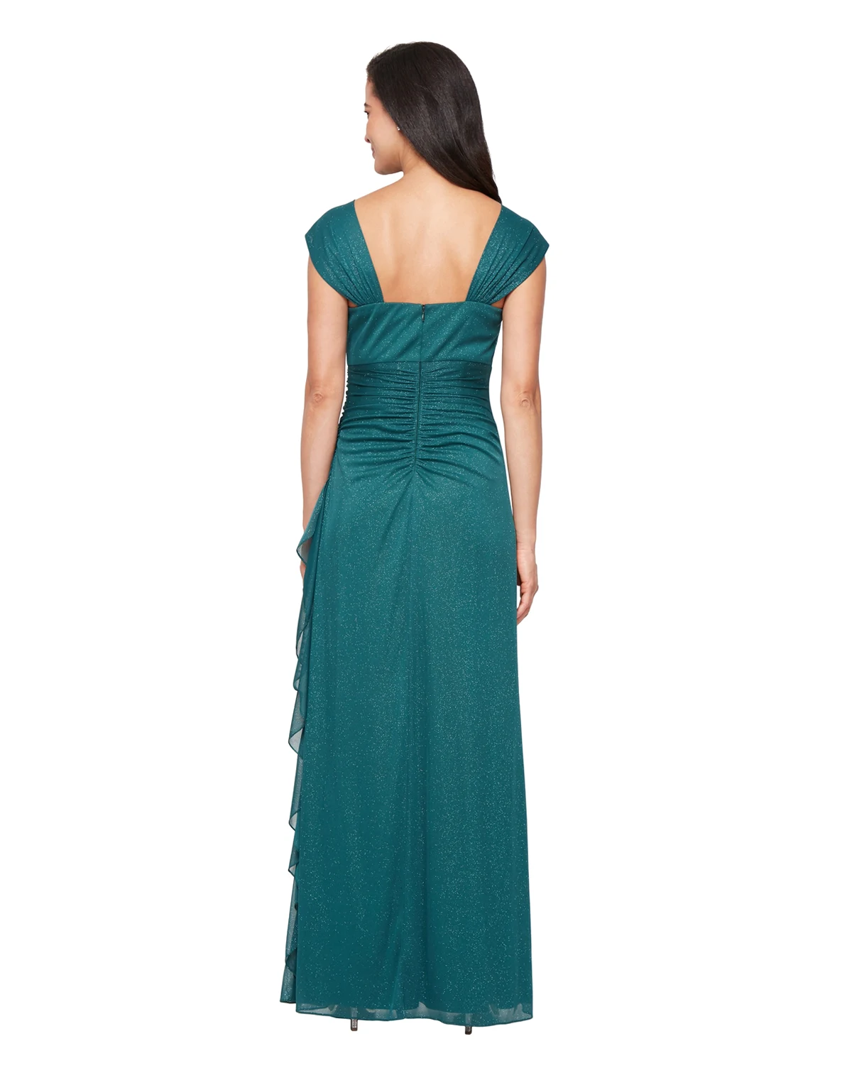 Embrace flowing elegance in this long dress from Alex Evenings, highlighted by a soft cowl neck and short sleeves. The A-line silhouette and chiffon fabric create a graceful and romantic look for formal events.