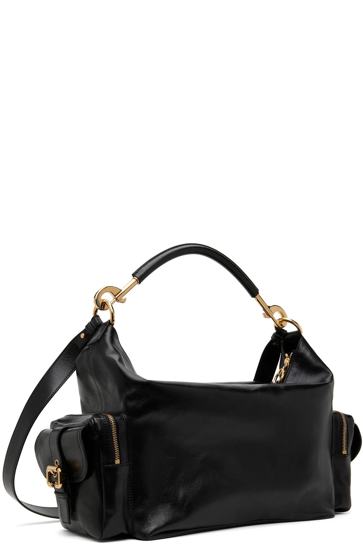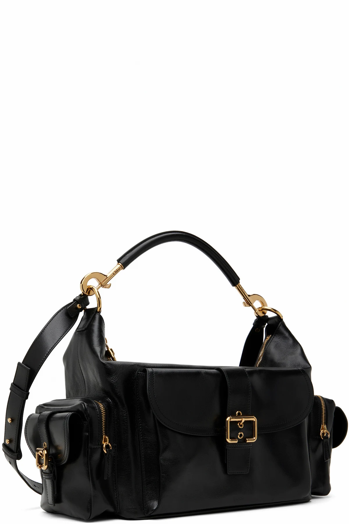 LWG-certified nappa buffalo leather shoulder bag in black.